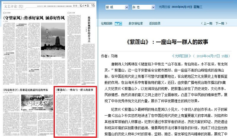 唐朝诗人刘禹锡在《陋室铭》中有云“山不在高,有仙则名。水不在深,有龙则灵。”紫蓬山,这一位于安徽省会合肥市西郊、由一座座不高的山峰组成的连绵山脉,在中国近现代史上有着不可替代的重要地位,在合肥地区文化发展史上有着摇篮般的作用,在台海关系中有着独特的意义。近日,由安徽广播电视台制作播出的5集人文纪录片《紫蓬山》,以宏阔深远的视野,把紫蓬山放在了历史流变、文化传承、民族情感、自然资源的意义之网上进行了全面审视,凸显了中华民族的精神世界,展现了中华优秀传统文化的力量,展示了科学发展理念的践行效果。