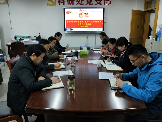 本网讯(科研处党支部)318日上午,为深入学习贯彻2019年全国两会精神,科研处副处长戴兆国为党支部全体党员讲授题为“学习和贯彻两会精神,落实和发展两会要点”的党课。