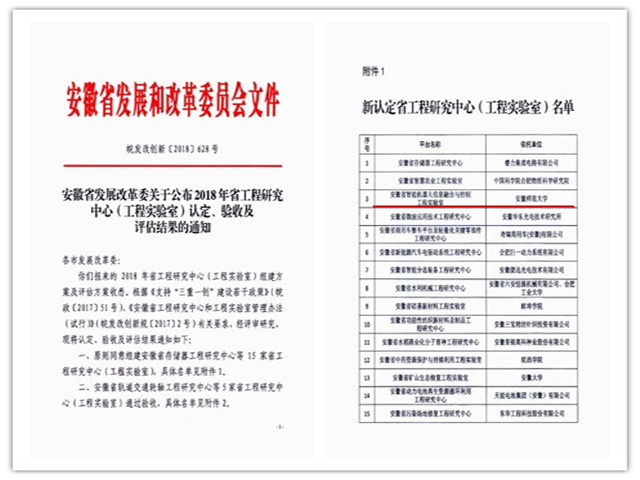 安徽省智能机器人信息融合与控制工程实验室批文