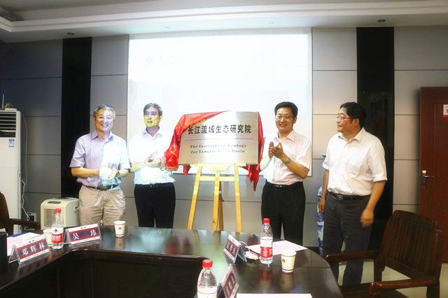 韩斌、王忠、张庆亮、朱家存等领导共同为长江流域生态研究院揭牌。