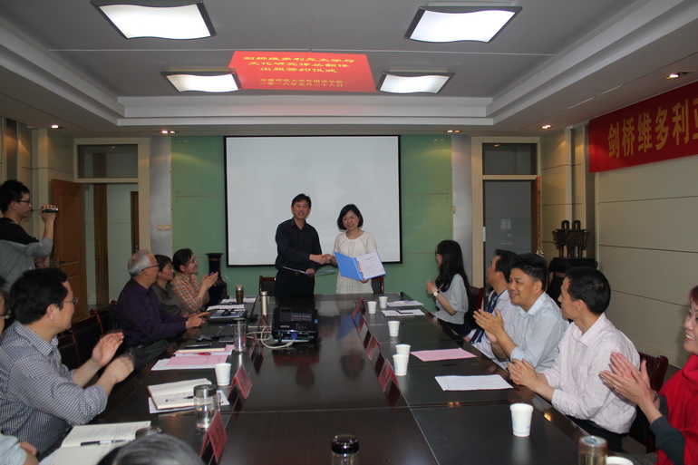 为推动外语科研,在学校大力支持下,在学院领导深谋远虑安排下,蔡玉辉教授筹谋《剑桥维多利亚文学与文化研究译丛》已久,作为“维多利亚学”的一部分,已经成功立项学校哲学社会科学繁荣发展重大项目《维多利亚文学研究》,并积极筹备国家重大招标项目的申报工作。去年蔡玉辉教授就已挑选了《剑桥维多利亚文学与文化研究丛书》中代表作与学院老师研读,举行过多次研讨会。在学院安排下,今年4月蔡玉辉教授为此专门和译林出版社赴伦敦参加书展,并同译林出版社一起就移译《剑桥维多利亚文学与文化研究》丛书事宜与剑桥大学出版社进行了深入探讨,达成了初步合作意向。