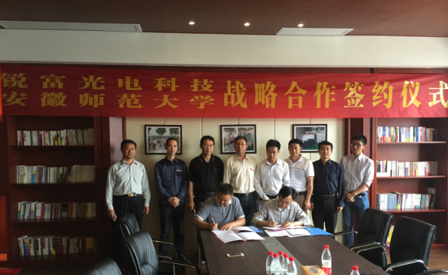 随后,在宿州市高新区管委会副主任王杨等同志的陪同下,我校一行参观了高新区的安徽锐富光电科技有限公司,该企业是一家专注于手机玻璃盖板、OGS产品研发、生产、销售一体化的高科技企业。近期我校与该企业已开展多次交流,为充分利用学校的科研资源,发挥企业的生产优势,将科研成果尽快地转化为生产力,不断提升相关产业的技术和管理水平,双方达成合作意向,我校耿保友副处长与安徽锐富聂增青董事长分别代表学校和企业在校企合作协议书上签字,并与参会代表合影留念。