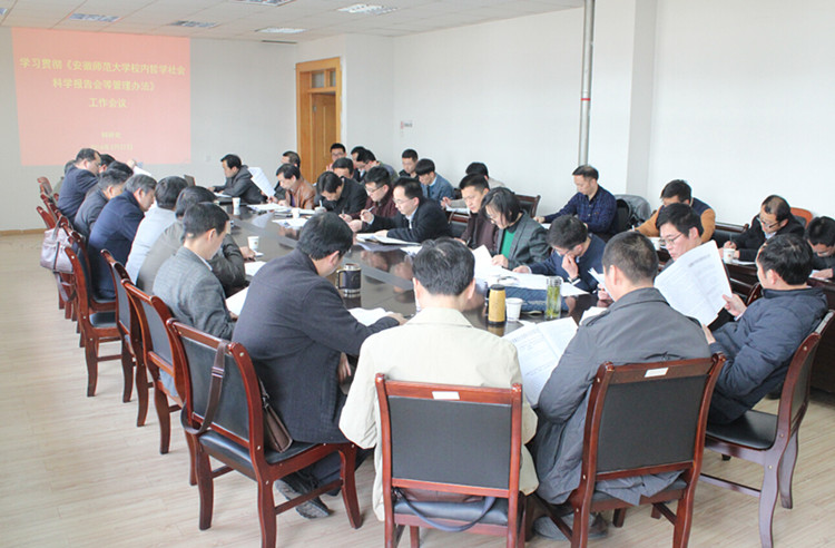 3 月22日 下午,科研处组织学习《安徽师范大学校内哲学社会科学报告会、研讨会、讲座、论坛管理办法》,学校相关部门负责人、各学院科研副院长参加会议,会议由科研处处长陆林主持。