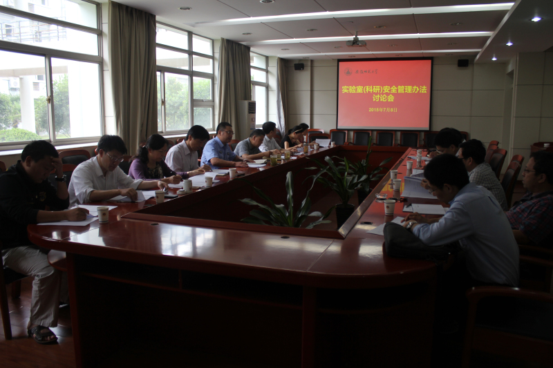 召开专题讨论会,邀请保卫处处长孙成岗、相关学院科研副院长、行政副院长、实验中心负责人等对“办法”进行研讨修订。会上孙成岗处长对校园安全生产工作相关政策进行了详细解读,参会人员围绕“废弃物处理”、“线路老化”等问题展开热烈讨论,并提出了可行性解决方案。
