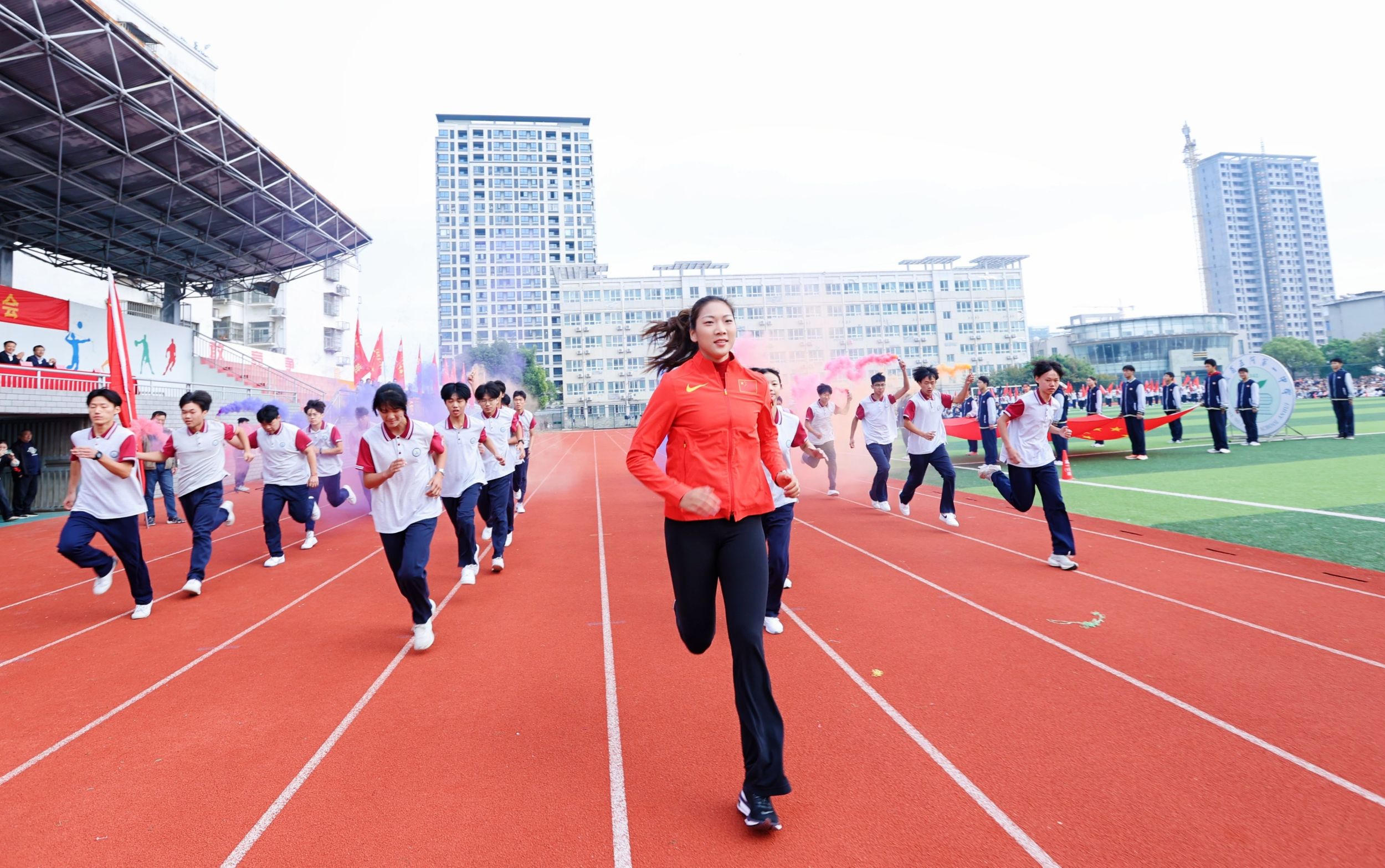 落实“五育并举”,推动体育精神进校园,以榜样力量引领更多中小学生参与运动、爱上运动。10月25日,教育集团邀请体育学院副教授、体育冠军王春雨走进蚌埠市五河一中、蚌埠市淮海小学秋季田径运动会。王春雨与同学们一同奔跑,一同进场,与同学们亲切互动,分享个人奋斗历程,交流自己成长感悟,激励同学们要培养社会责任感,勇于拼搏、积极向上。活动现场让同学们近距离感受到体育冠军的魅力,了解了体育运动背后的精神力量。