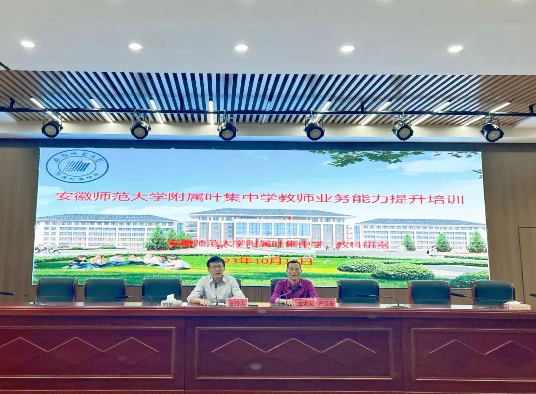 10月18日下午,安徽师范大学附属叶集中学“教师业务能力提升培训”活动在行政楼6楼会议室举行,活动邀请安徽师范大学附属中学语文教师、安徽省特级教师、正高级教师严景东为全校教师作题为“课堂内外——关于教师专业发展的思考”的讲座。活动由校长章志学主持。