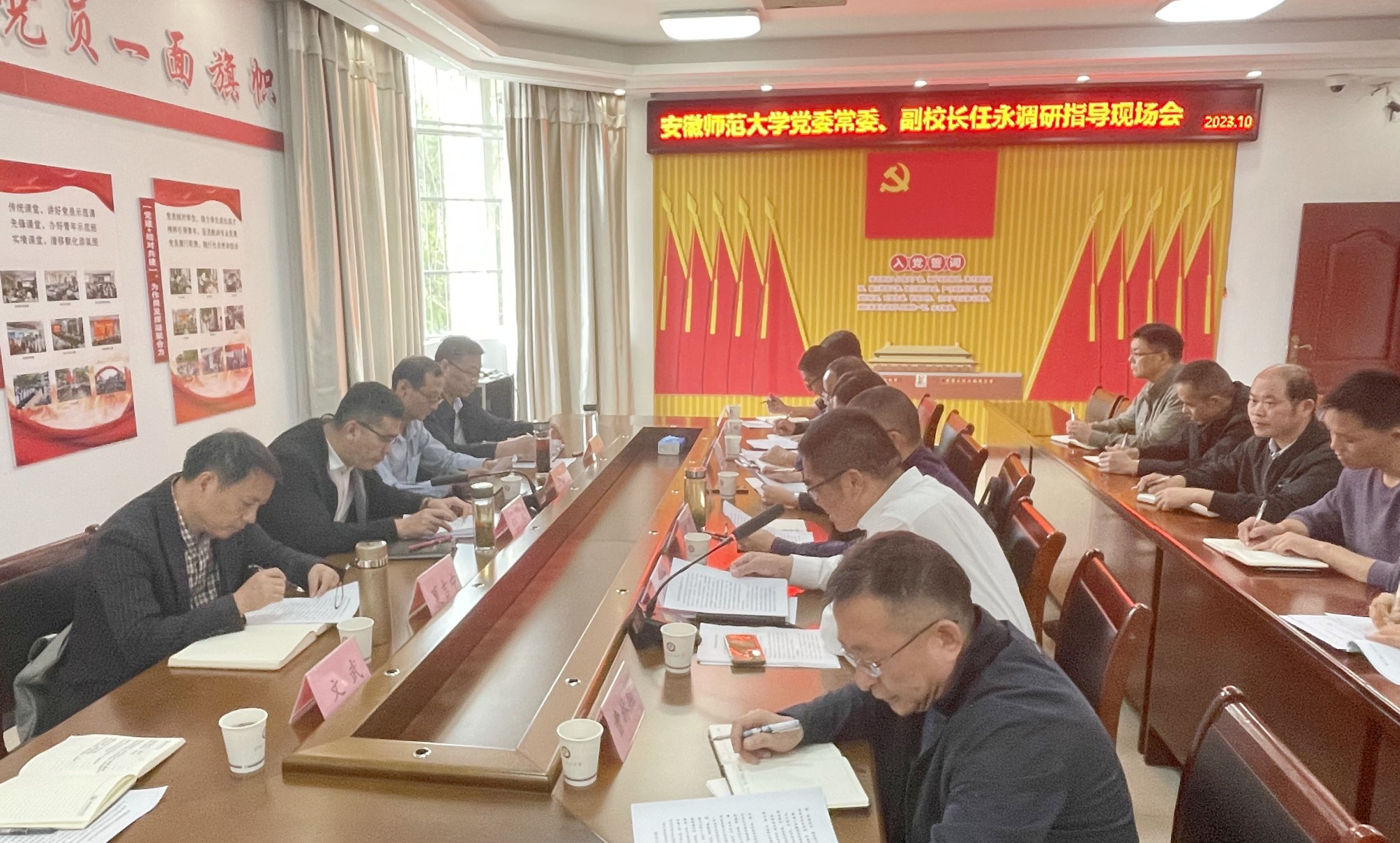 任永认真听取工作汇报后,对学校的可喜变化和托管帮扶所取得的阶段性成果给予高度赞赏,并对绩溪县委县政府、县教育主管部门的大力支持表示感谢。同时,他对绩溪中学办学发展中存在的问题和困难给予建设性指导,对学校今后的发展工作提出了明确要求:要进一步提高政治站位,强化政治担当,牢记县中托管帮扶项目实施的本意,要针对绩溪中学现状,精准发力,攻坚克难,出实招,干实事,为学校教育教学带来新理念、新思维;学校发展的关键在于教师,绩溪中学要进一步优化师资队伍结构,充分利用安徽师范大学教师教育资源,认真落实师范生对口教育见习、实习等工作,推动实施绩溪中学针对安徽师范大学毕业生定向招录工作;要把教育教学质量作为学校发展的生命线,要准确定位,提炼特色,协调各方,开拓办学思路,多借鉴附中本部经验,注重拔尖创新人才培养,努力办好人民满意的教育。