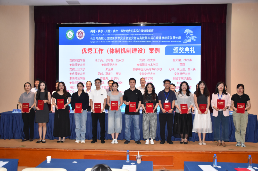 6月27日至28日,长三角高校心理健康学术交流会暨安徽省高校第四届心理健康教育发展论坛在芜湖市召开,来自长三角地区及北京、贵州、福建、陕西等省市的近400余位专家学者参与本次会议。我校心理健康教育工作案例《以“四全”心理护航体系培育时代新人》获安徽省优秀案例,心理中心教师张明明获评咨询师先进个人,专职辅导员陶勇获学工系统先进个人,学生处副处长项家春就学校心理健康教育工作典型经验做分享交流。