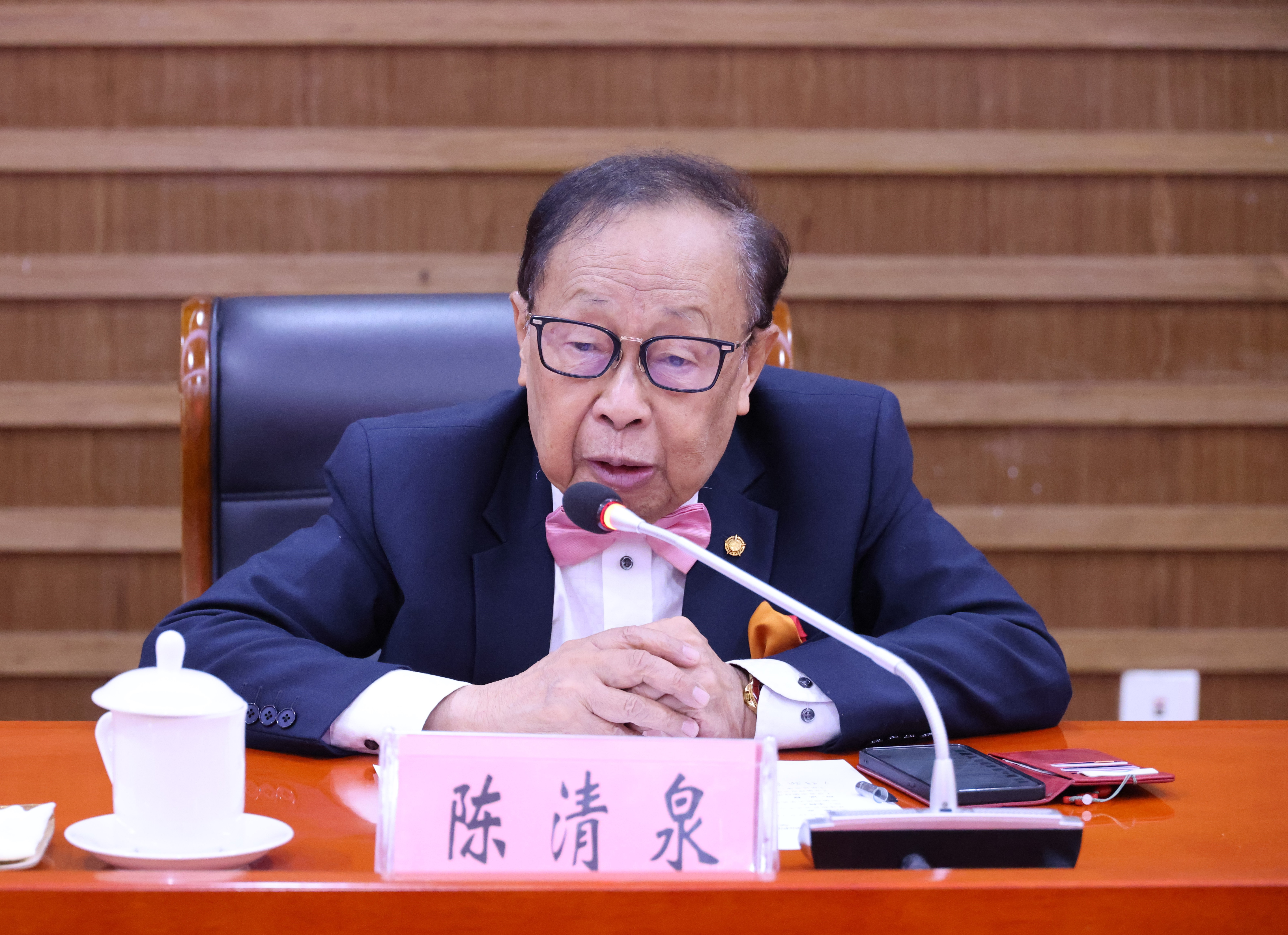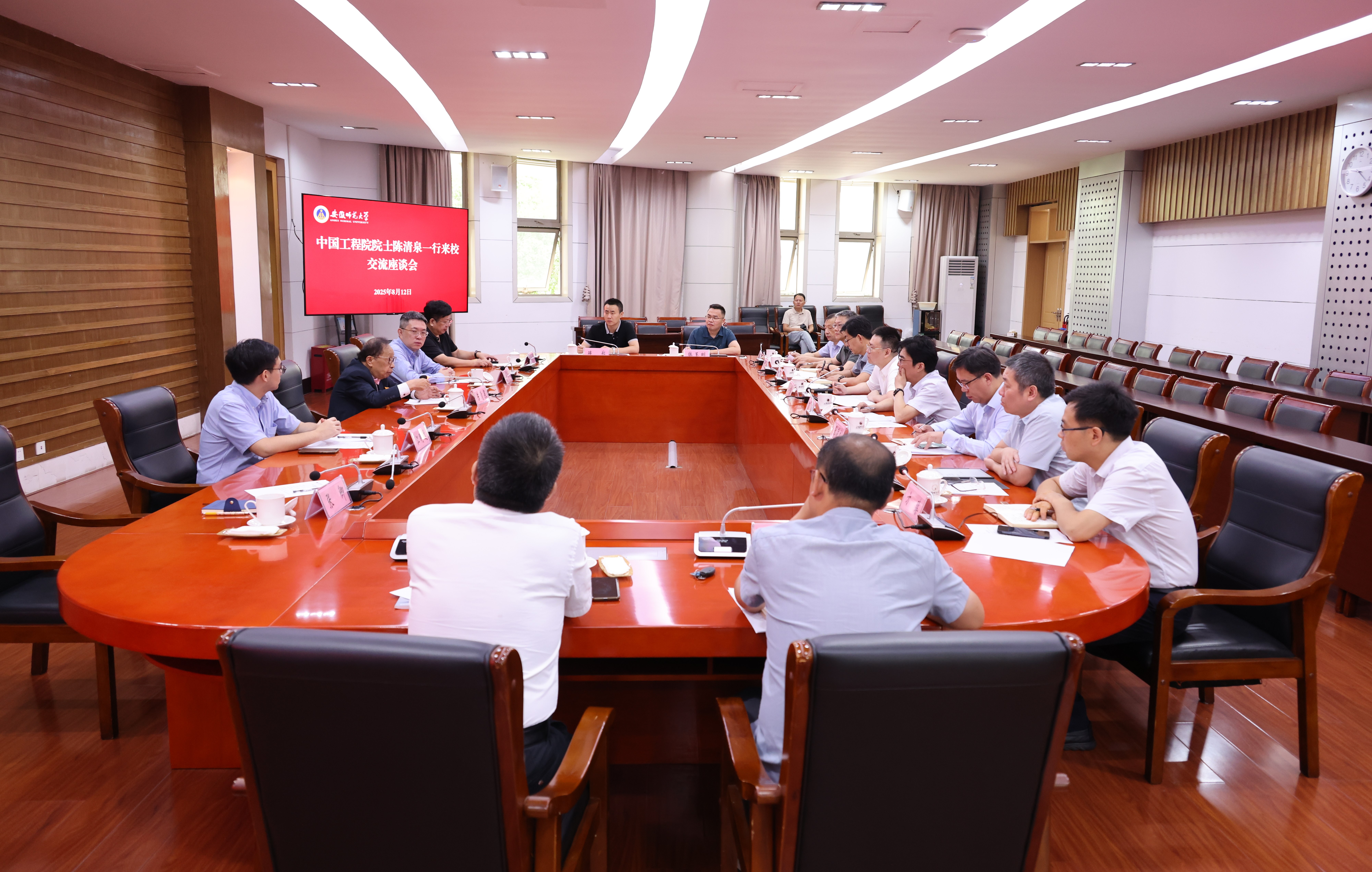 陈清泉院士对芜湖市人才集团和学校的热情接待表示感谢,结合自身的成长经历,围绕大学的发展历程和功能,强调了教育、科技、人才一体化发展体系的重要性。他指出,师范大学是培养教师的摇篮,承载着传授知识、发展知识、应用知识,用知识造福人类的重要使命,要深入学习贯彻习近平总书记关于教育科技人才工作的重要论述,把立德树人作为教书育人的首要任务,通过言传身教,引导帮助学生树立正确的人生观、价值观、道德观,培养德智体美劳全面发展的社会主义建设者和接班人。要注重跨学科融合,打破学科壁垒,探索科学与艺术融合发展,培养学生具备综合运用多学科知识解决实际问题的能力。要紧跟国际前沿研究动态,加强原创性、引领性科技攻关和高水平人才队伍建设,深化校地、校企合作,推动产学研深度融合,将科研成果更好地转化为实际生产力,以科技和人才支撑地方发展,服务教育、科技、人才强国建设。