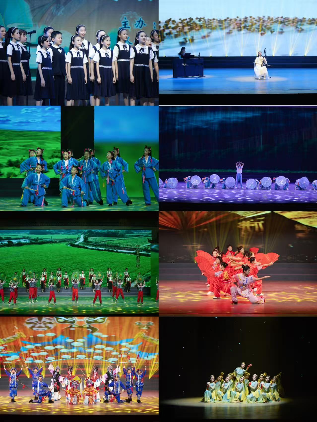 舞蹈《荷戏花鼓梦》以安徽非遗“花鼓灯”为魂,融入碧荷摇曳之韵,生动展现了淮河岸边水乡少年嬉戏逐梦的童趣画卷;表演唱《山歌本是古人留》则带来了原汁原味的罗城民歌,让观众感受到了六百年民歌的传承魅力;合唱《春满巢湖》用清泉般的嗓音唱响巢湖岸畔的欢腾,展现了孩子们对家乡沃土的纯真礼赞,器乐合奏《井湖春晓》将省级非遗“铜陵牛歌”的民间曲调与黄梅戏音乐元素巧妙融合,展现了天井湖春天的诗意……一句句稚嫩的歌声,一段段传统的唱腔将现场的气氛推向高潮。