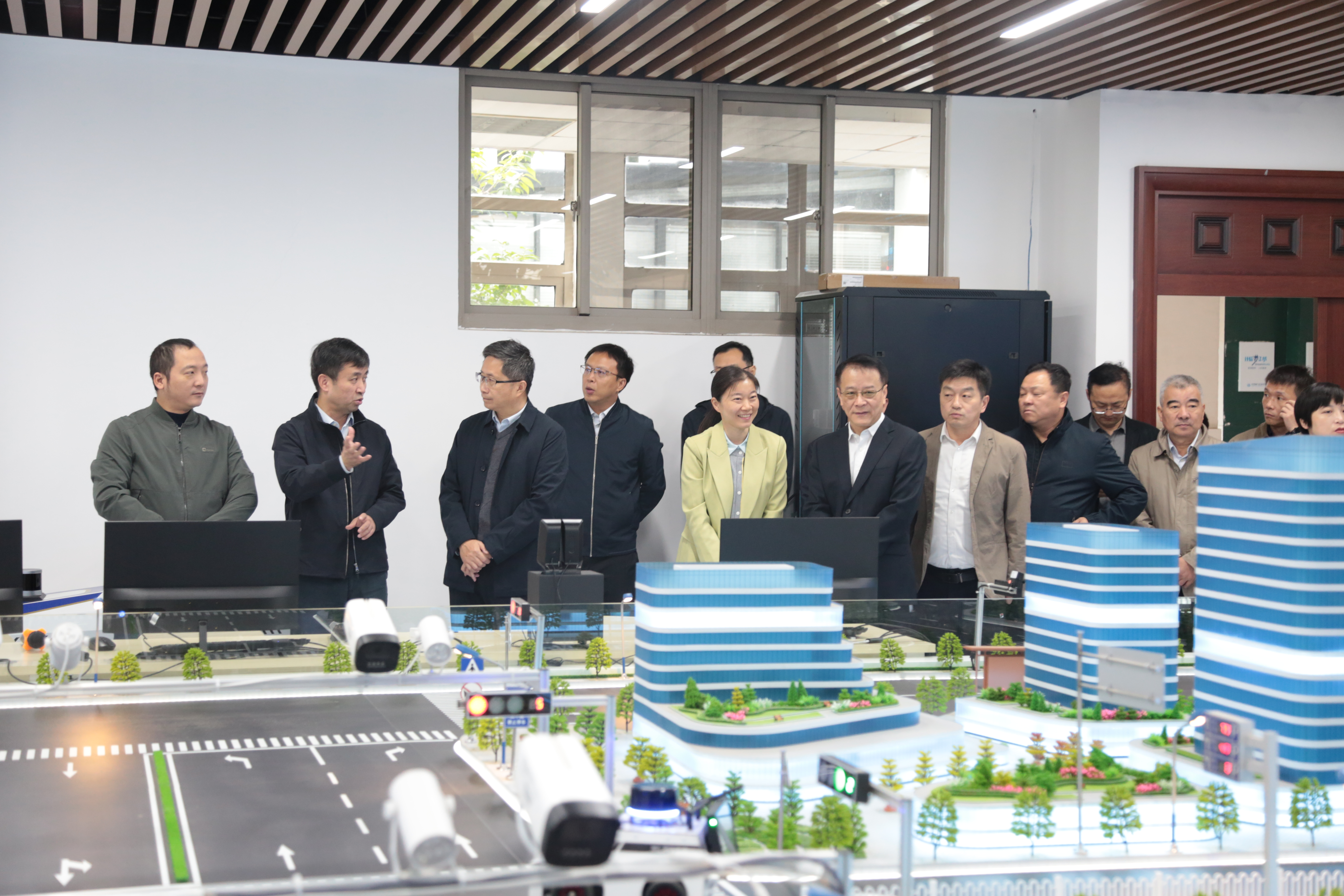 随后,张东一行实地考察了计信学院本科生专业实验室,重点参观了工业互联网实验室。网络工程系主任张捷老师现场汇报了工业互联网实验室的建设背景、目标定位、硬件配置、教学科研应用、社会服务成效以及目前承担的科研项目等情况。张东认真听取汇报,并就实验室的技术创新、成果转化、产业对接及未来发展规划等关键问题,与现场人员进行了深入交流。