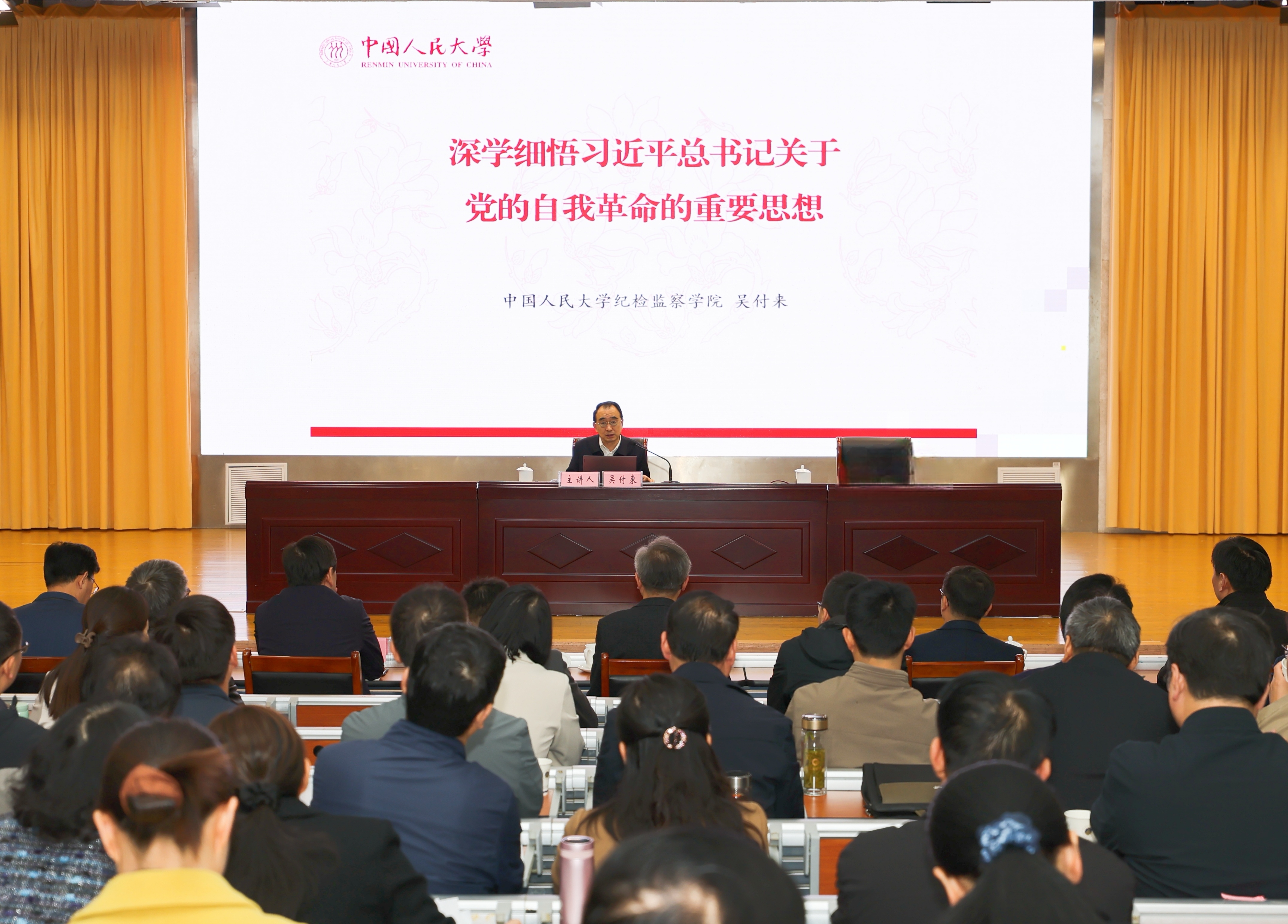 吴付来以“深学细悟习近平总书记关于党的自我革命的重要思想”为题,结合历史和党史上的典型案例,围绕“党的十八大以来,在推进全面从严治党伟大实践中,我们党给出了跳出历史周期率的第二个答案”“不断深化对党的自我革命的规律性认识”“纵深推进全面从严治党、党的自我革命,为强国建设、民族复兴伟业提供坚强保障”三个层面系统阐述了党的自我革命的重大意义和实践要求。