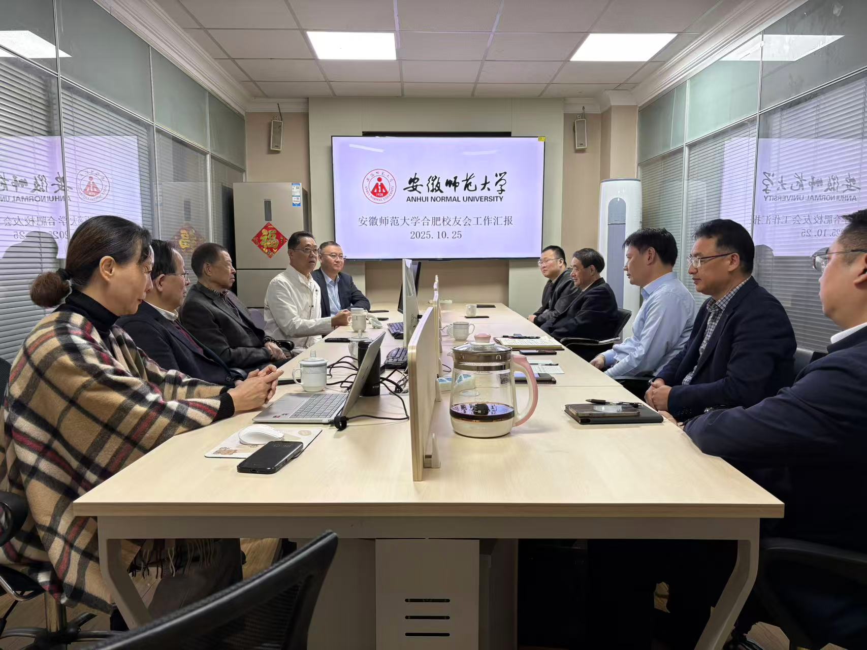 1026日下午,校党委常委、副校长桑青松、王刚在文典楼A925会议室会见安师大深圳校友会会长张晓春、副秘书长司家胜,合肥校友会副会长余伯成、合肥校友企业家代表马立明、刘海洋一行。