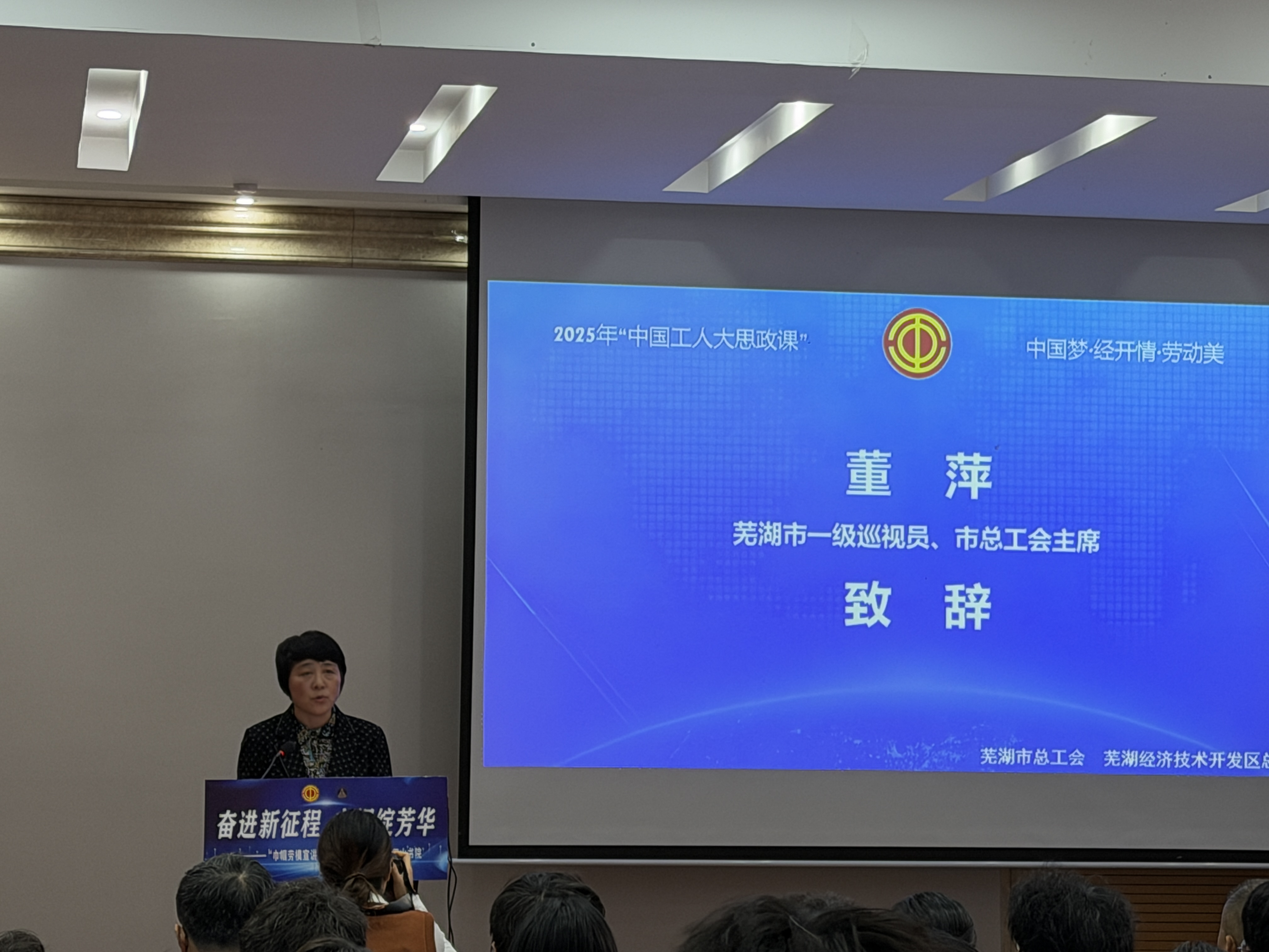 董萍在致辞中指出,巾帼劳模是各行各业的杰出代表,她们的奋斗故事是弘扬劳模精神的生动载体。此次宣讲活动是落实 “中国工人大思政课” 的重要举措,希望通过女性劳模的示范引领,激励青年学子坚定理想信念,练就过硬本领,将个人理想融入国家发展大局,在新时代新征程中绽放青春芳华。