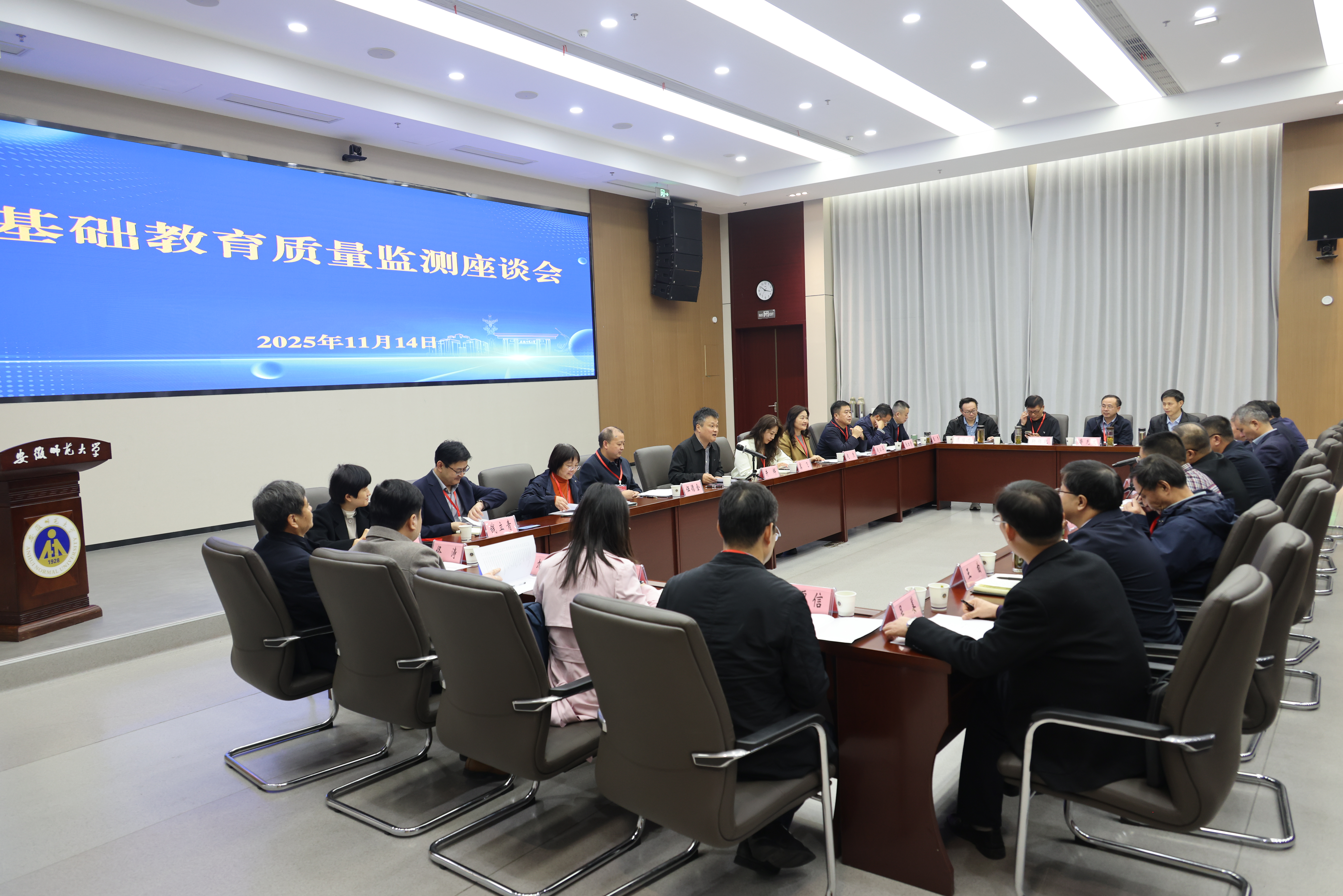 期间,与会人员参观了“京皖携手育英才 协同提质谱新篇”校地合作成果展示,详细了解京皖两地在师范教育协同、基础教育服务等领域的合作成效,并实地调研了中国诗学中心(文学院)。当天,还同步举办了基础教育质量监测座谈会、教育学类学科专业发展研讨会、花津大讲堂、教育评估评价学术报告会等系列活动,相关专家学者围绕学科专业发展、教育质量提升等主题开展交流研讨,为合肥中心未来发展与安徽基础教育提质贡献智慧。