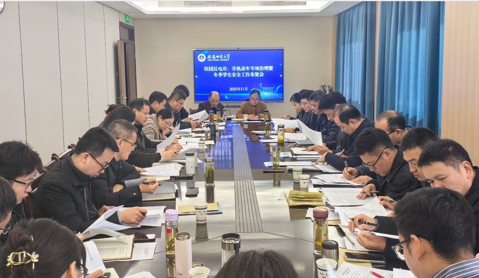 近日,学校召开校园反电诈、非机动车专项治理暨冬季学生安全工作布置会,校党委常委、副校长王刚出席会议,学校相关部门负责人、各学院分管学生工作负责人参加会议,学工部部长乔静主持会议。