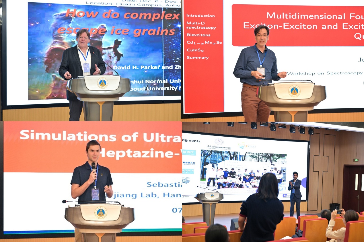 12月6日至12月8日,由安徽师范大学主办的2025复杂体系光谱与反应动力学前沿国际论坛在安徽师范大学花津校区望道楼报告厅召开。本次国际论坛汇聚了来自德国University of Duisburg-Essen、荷兰Radboud University、中国科学技术大学、清华大学、复旦大学、中国科学院大连化学物理研究所、南方科技大学以及上海科技大学、之江实验室等多所高校与科研机构的20余位杰出专家学者。与会代表共同围绕复杂体系光谱与反应动力学前沿领域开展深入交流与研讨,分享最新科研进展,探讨未来合作机遇。会议组委会共主席由物理与电子信息学院陆洲教授、孙中发教授和我校长江学者讲席学者David Parker教授共同担任,物理与电子信息学院部分专业教师和研究生等60余人参加了本次国际研讨会。