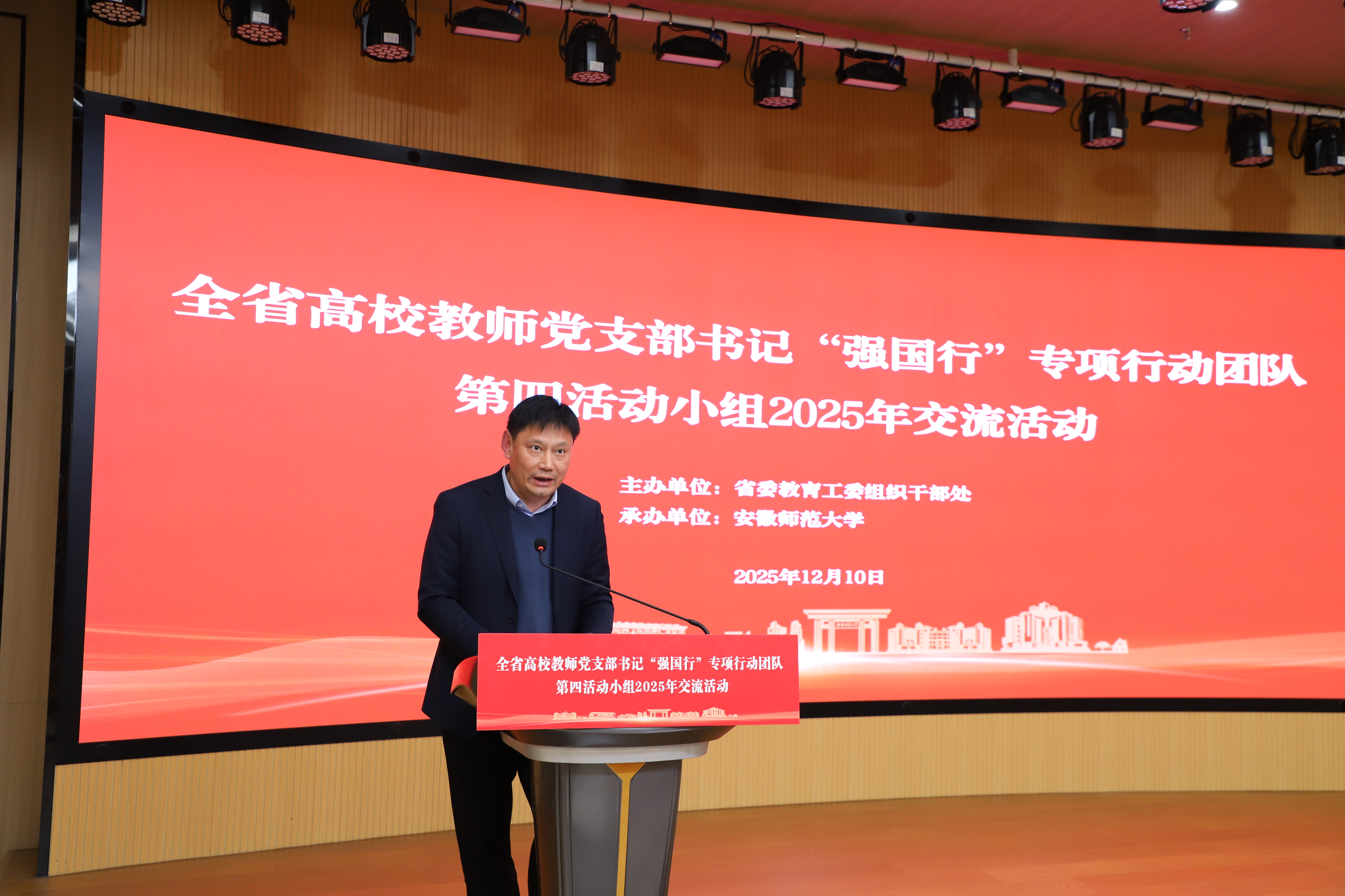 12月10日,全省高校教师党支部书记“强国行”专项行动第四活动小组2025年交流活动在我校花津校区举行。校党委常委、副校长王刚,省委教育工委组织干部处同志,全省高校“双带头人”教师党支部书记“强国行”专项行动团队第四活动小组所在单位组织人事部门、党委工作部门、学院领导班子成员及党支部负责人,学校党委组织部、教师工作部和各学院党委主要负责人、全校教师党支部书记等100余人参加活动。