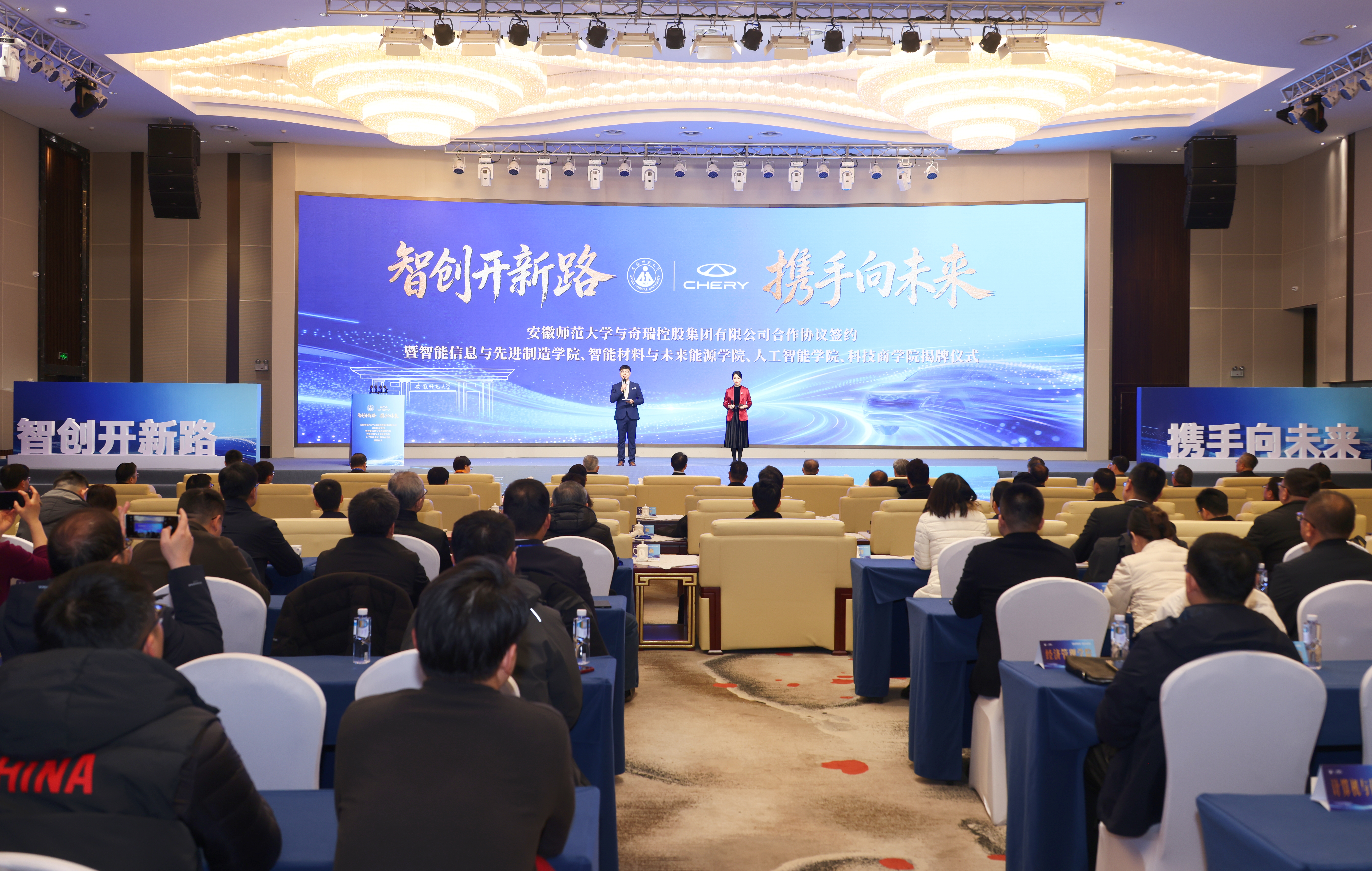 2月7日,安徽师范大学与奇瑞控股集团有限公司合作协议签约暨智能信息与先进制造学院、智能材料与未来能源学院、人工智能学院、科技商学院揭牌仪式在芜湖市国际博览中心举行。中国科学院院士李永舫、郑志明、朱美芳、俞书宏,省委教育工委书记、省教育厅厅长钱桂仑,芜湖市委副书记、市长徐志,奇瑞控股集团董事长尹同跃,芜湖机器人产业发展集团董事长许礼进,安徽师范大学党委书记蒋家平,党委副书记、校长熊宇杰,新工科学院咨询委员会委员等出席仪式。