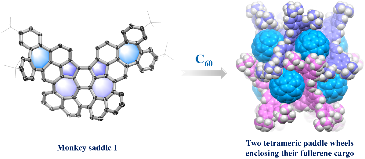 化学与材料科学学院祝崇伟团队成功合成并报道了一种新型纳米石墨烯,该分子骨架中嵌入了二环庚并[cd,fg]-反式-茚并苝(DCH-as-I,苝的非交替异构体之一)结构单元及两个额外的七元环,表现出优异的溶解性和荧光发射性能、多个可逆氧化还原过程、中心碳骨架的整体芳香性,以及独特的超分子组装行为。该研究系统阐明了含DCH-as-I单元与七元环的纳米石墨烯所具有的独特结构与电子特性,同时为以猴鞍状纳米石墨烯为构筑基元,合理设计与构筑新型三维超分子碳材料提供了一种全新研究思路。在《Angewandte Chemie International Edition》期刊上发表题为“A Monkey-Saddle-Shaped Nanographene Embedding a Dicyclohepta[cd,fg]-as-Indacene Core and Two Additional Heptagons, and Its Paddle-Wheel Co-Assembly With Fullerenes”的研究论文(VIP paper)。原文链接:https://onlinelibrary.wiley.com/doi/10.1002/anie.5649022。该论文第一作者为安徽师范大学硕士研究生刘文君、张慧敏。通讯作者为德国维尔茨堡大学Frank Würthner教授、安徽师范大学祝崇伟老师。安徽师范大学为论文第一完成单位。