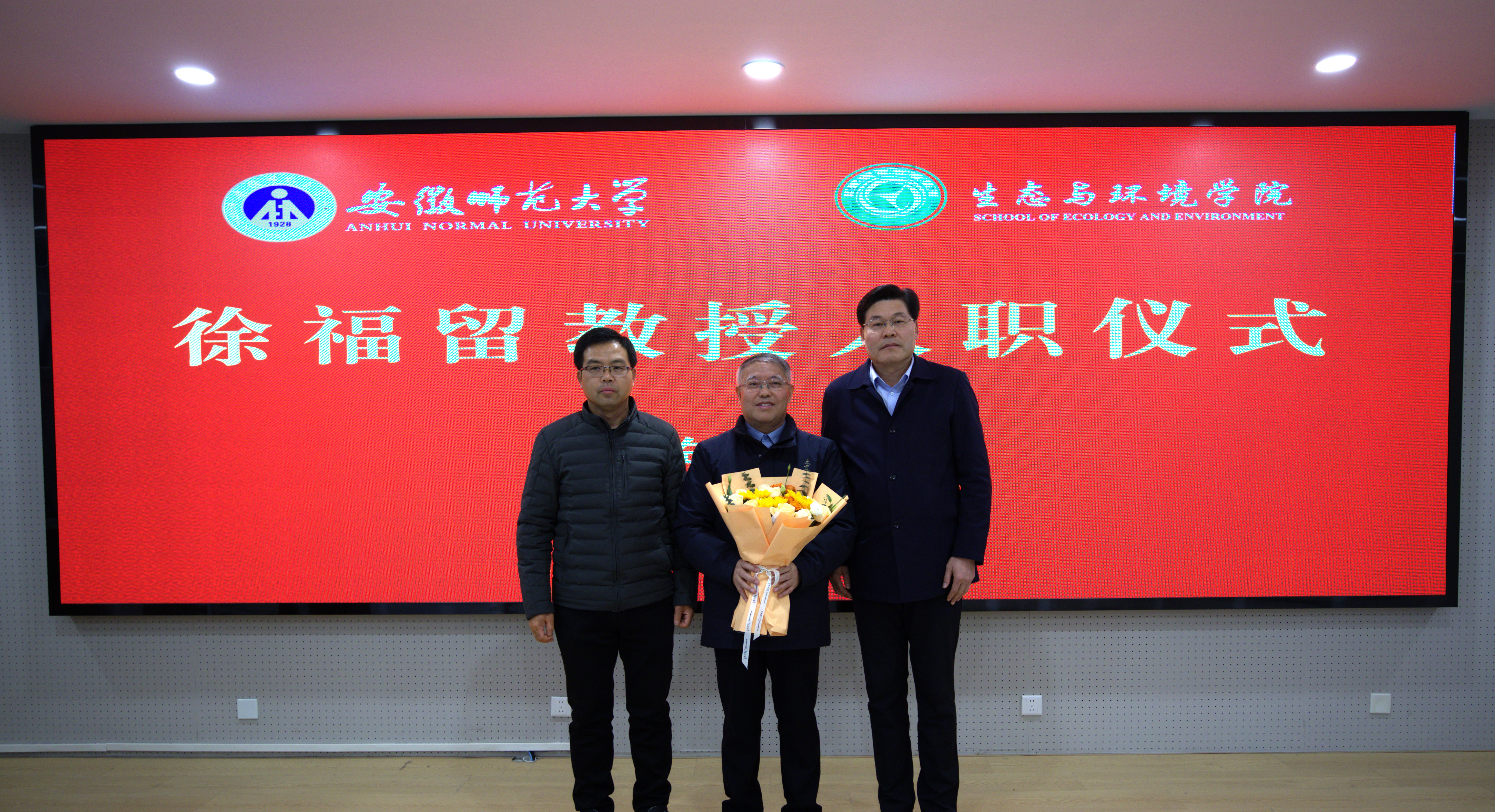 仪式上,方臻宣读了学校聘任决定,田兴友为徐福留颁发聘书。徐福留发表入职感言,表达了自己对回家乡安徽、到安师大工作的欣喜,期望与师生一起努力,在学科建设、科研创新、社会服务、人才培养和队伍建设等方面取得新进展新成绩。