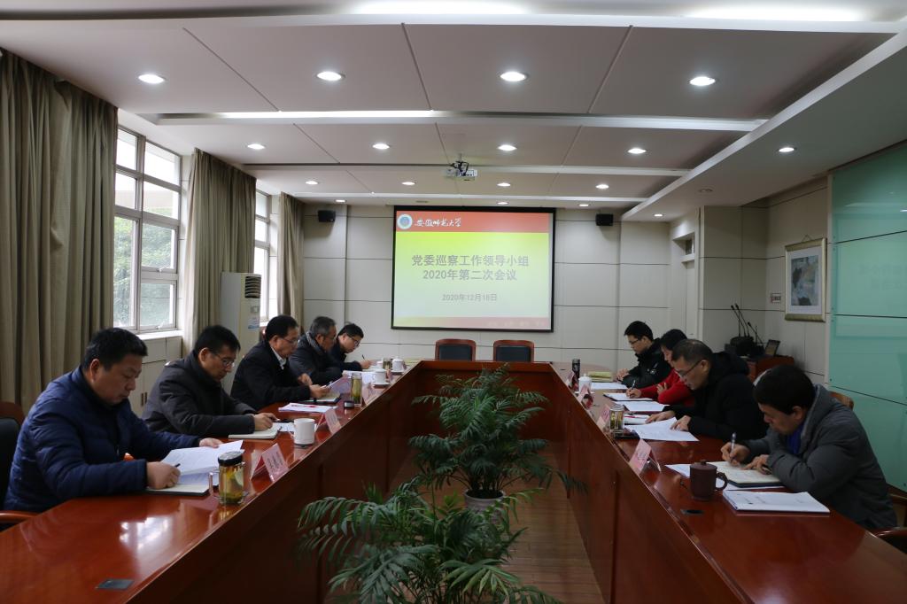 本网讯(党委巡察办)12月18日上午,校党委巡察工作领导小组2020年第二次会议在校行政楼第一会议室召开。巡察工作领导小组成员,第一轮巡察第一、二巡察组组长、副组长、联络员参加会议,校党委书记、巡察工作领导小组组长胡朝荣主持会议。