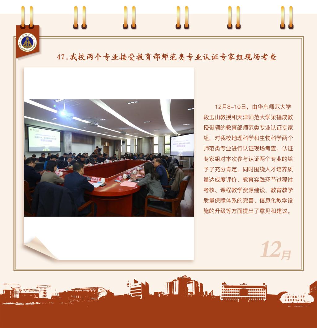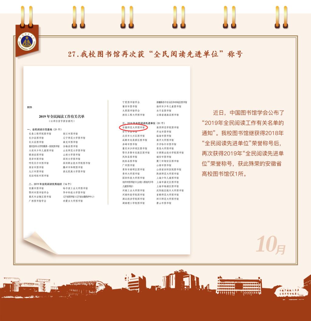 编者按 2020年,跌宕起伏,波澜壮阔。中国经历了前所未有的艰难曲折,也创造了举世瞩目的人间奇迹。 2020年,全体师大人凝心聚力、开拓创新,知重负重、攻坚克难,加快推进高水大学建设,在教学、科研、文化、服务等方面取得了丰硕成果。这一年,学校荣获“全国文明校园”,“材料科学”学科首次进入ESI全球前1%,六个学科入选安徽省高峰学科,路丙辉教授荣获“全国先进工作者”荣誉称号,舒新文教授科研团队最新科技成果产生广泛社会影响并受到省委书记李锦斌同志充分肯定,1200万字《刘学锴文集》震撼发布,优秀学子王春雨在全国田径锦标赛上夺冠,蔡张飞获评“中国大学生自强之星标兵”,顺利召开研究生教育大会、文科工作会议……一行行脚踏实地的足迹,印证了师大人开创事业的坚强定力;一次次永不止步的探索,书写了师大人追求卓越的强烈信念;一幅幅撸起袖子加油干的画面,诠释了师大人教书育人的初心和担当。
