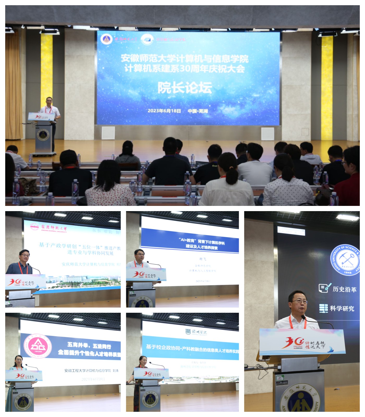 为全面回顾计算机建系30年办学与计算机学科发展历程,大力推进高水平学院建设,计算机与信息学院于6月18日上午举办了计算机系建系30周年庆祝活动暨院长论坛。副校长景晓军教授、原数学系主任、原校党委书记、校长丁万鼎教授、原数计学院院长祝东进教授等学校领导及学院老领导出席活动,学校党政机关和兄弟院系领导、校友代表及计信学院退休教师代表、师生代表近400人参加活动。中国科学技术大学苏州研究院原院长黄刘生教授、上海交通大学教务处副处长朱燕民教授以及捐赠企业代表杭州小码王高级合伙人杨健副总裁应邀出席,学院党委书记袁兴龙主持庆祝活动。