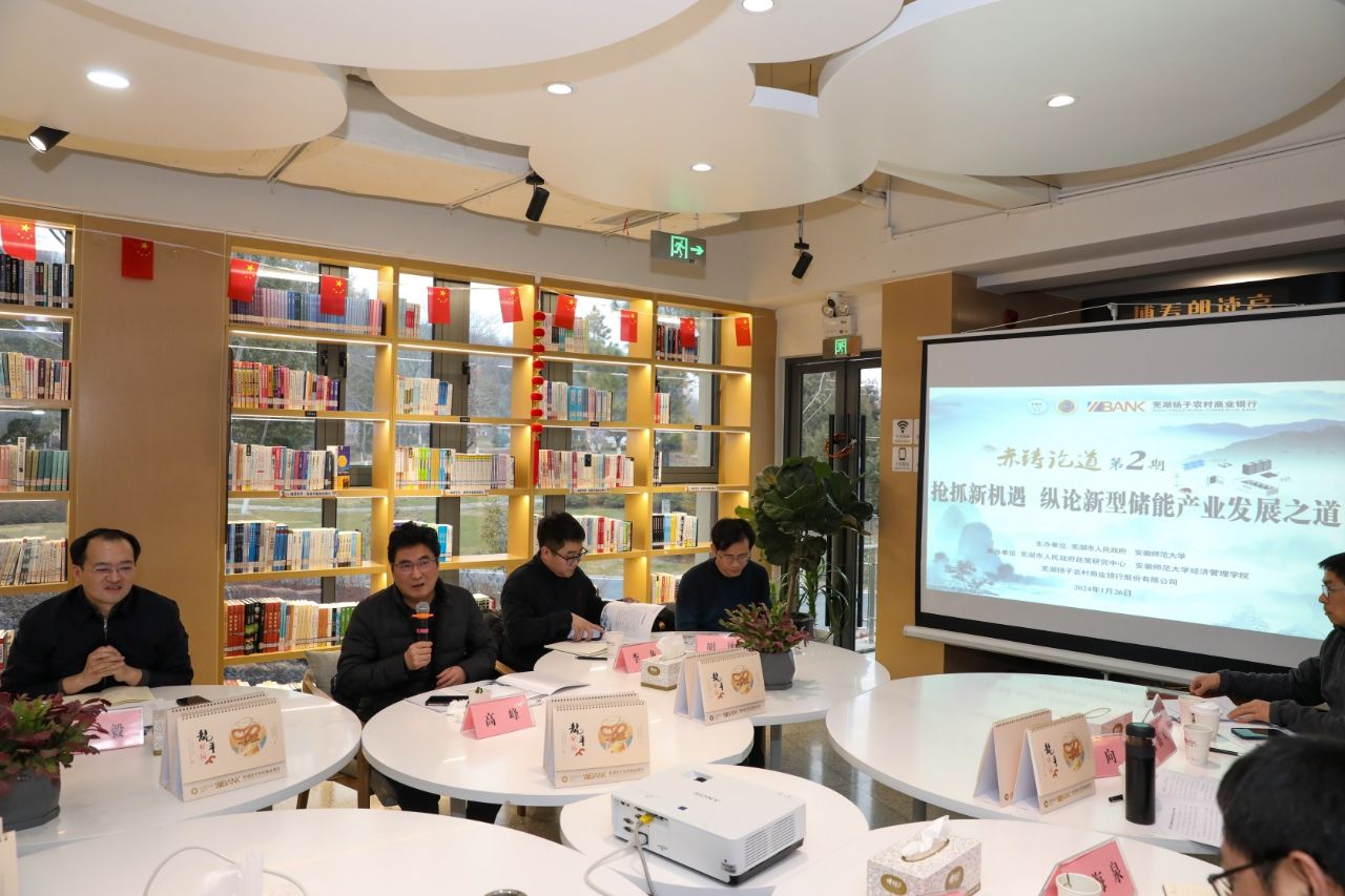 1月26日,由我校和芜湖市人民政府共同主办,经济管理学院、市政府政策研究中心以及芜湖扬子农村商业银行股份有限公司共同承办的第二期“赤铸论道”思享会在赤铸书院开讲。本次活动的主题为:抢抓新机遇,纵论新型储能产业发展之道。校党委常委、副校长高峰,芜湖市人民政府副市长蔡毅,安徽省经济和信息化厅(省光储办)电子信息处处长蒋晨捷,芜湖市相关职能部门负责同志以及近二十位国内储能领域专家、企业家出席本次活动。