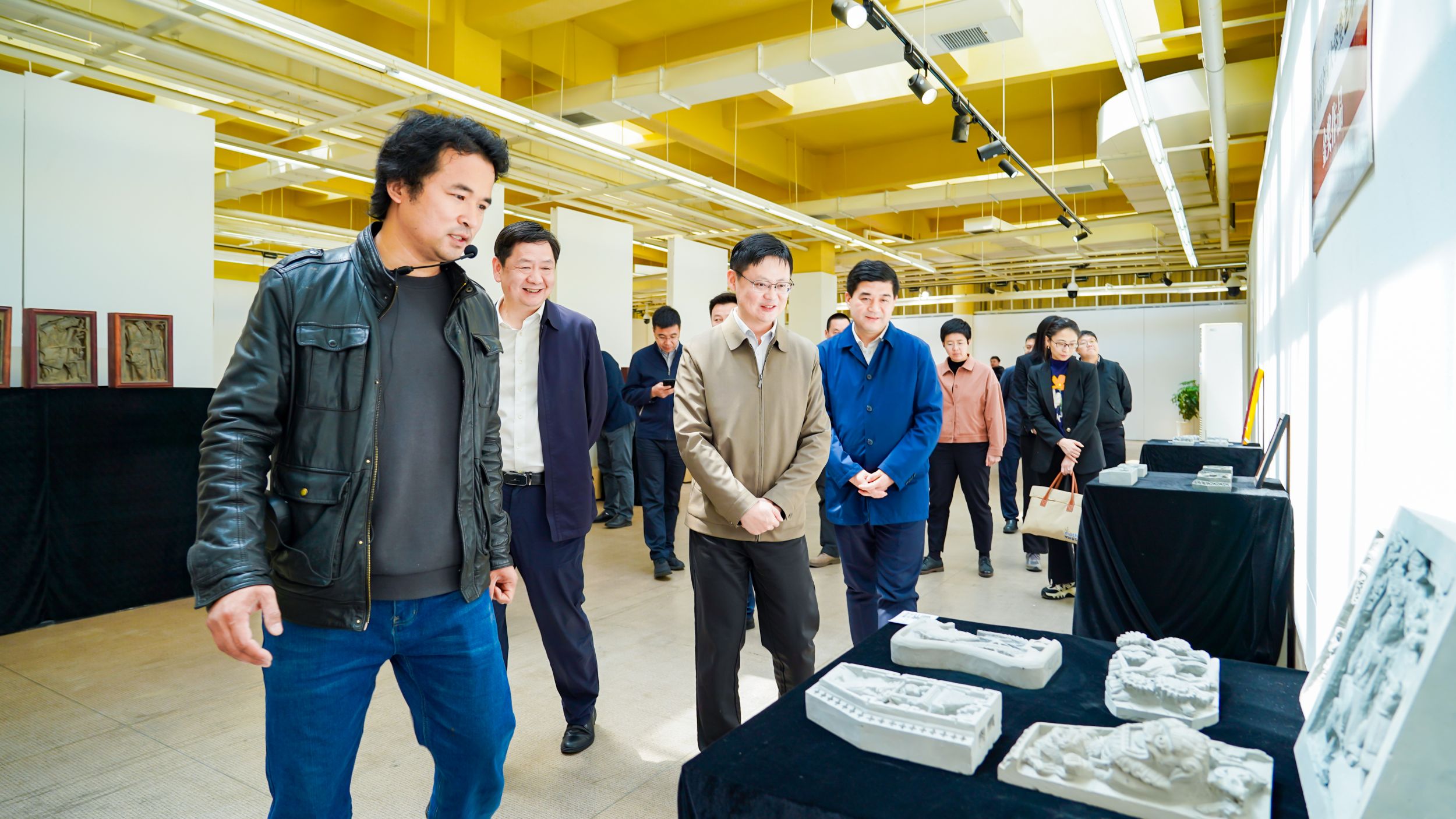 在我校校史馆、博物馆,调研组一行听取了学校发展历史、前景展望及“三大行动计划”推进情况,深入了解了我校师生在徽学研究领域做出的贡献。在美术学院美术馆,调研组一行参观了第六届全国大学生艺术展演一等奖项目“徽州三雕艺术工作坊”师生作品展,现场观摩学生传承活化徽州三雕传统工艺技法,参与学生社团宣传推广徽文化的精品活动,深入了解我校师生立足安徽大地推动中华优秀传统文化创造性转化和创新性发展的具体做法。调研组一行还交流了大学生社会实践、青年人才引进等话题。