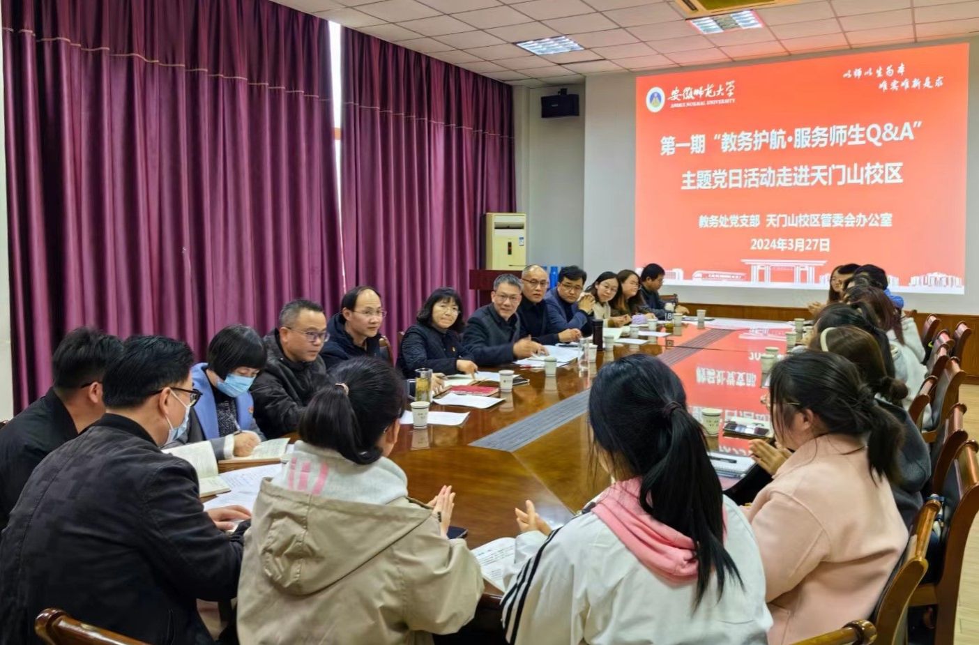 ☆ 在天门山校区“一站式”学生社区办事服务中心举办“教务护航·服务师生Q&A”活动,收集来自天门山校区8个学院14个专业的2023级学生代表在学业方面所遇到的各种问题,下一步将针对有关问题深入了解师生在教学过程中的困扰和需求,有针对性地优化教学管理流程和服务体系,提高教学管理效率。