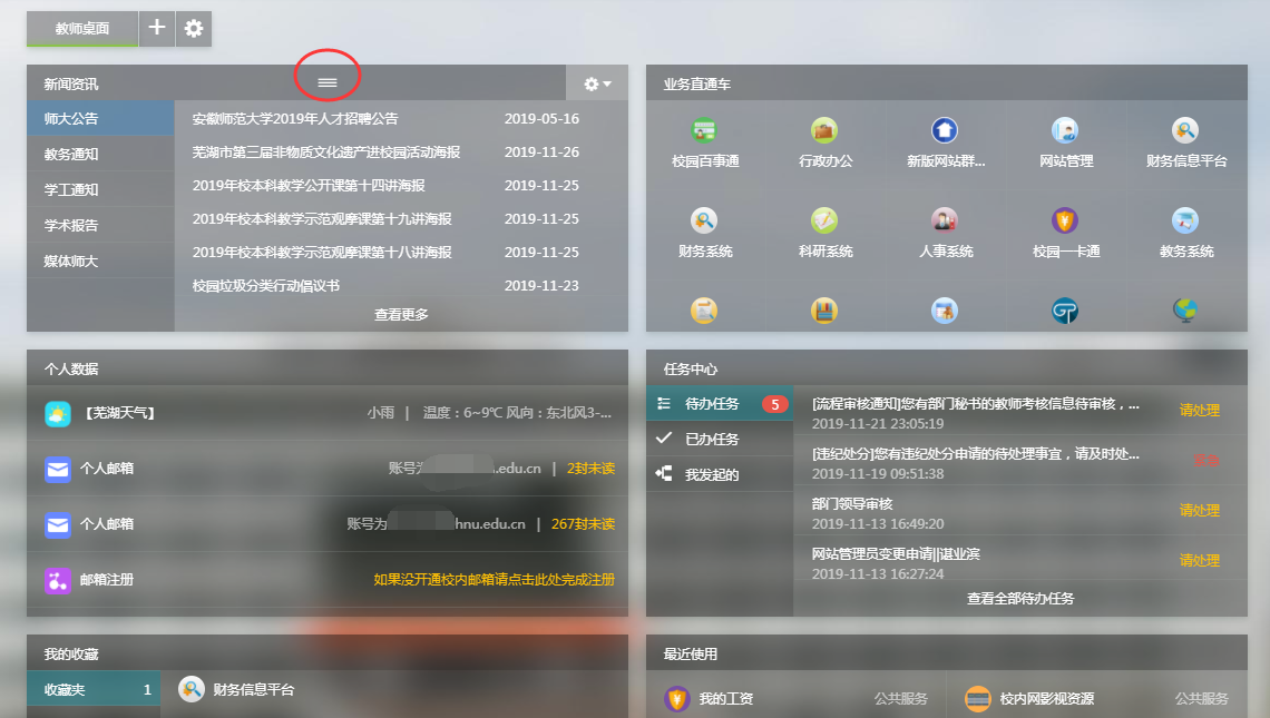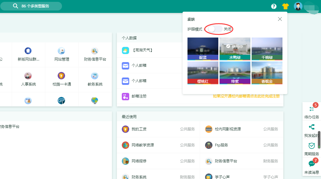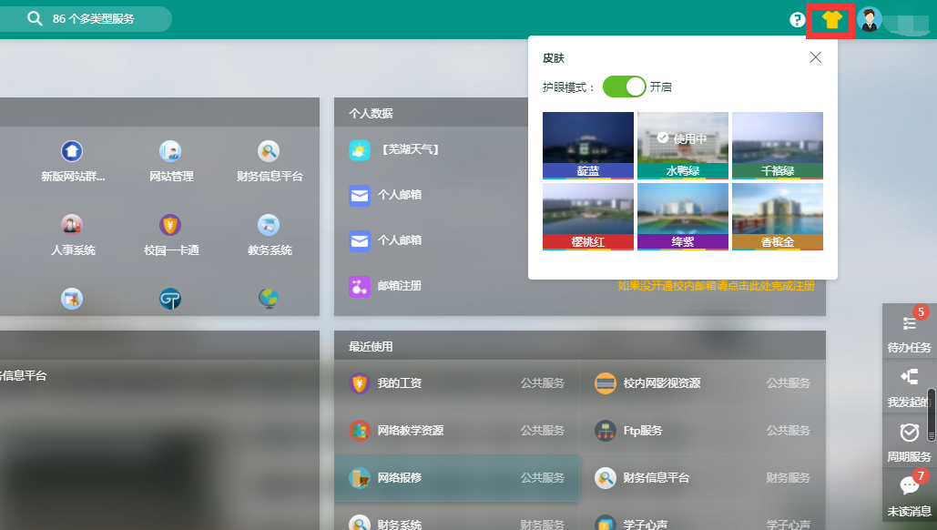 4. 办事大厅中的应用分角色显示,即教师界面仅显示教师有权限访问的、学生界面仅显示学生有权限访问的;