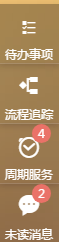 个人首页为用户提供了便捷的侧边栏工具,便于用户进行快速进入应用、流程跟踪等操作。系统共提供了7个侧边栏工具,分别位于两侧,