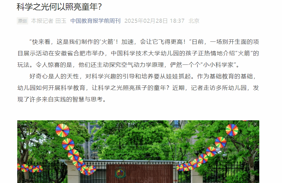 原报道阅读链接:【中国教育报学前周刊官微】https://mp.weixin.qq.com/s/tDE0-rHAcBDiYe2Kgk3lRg