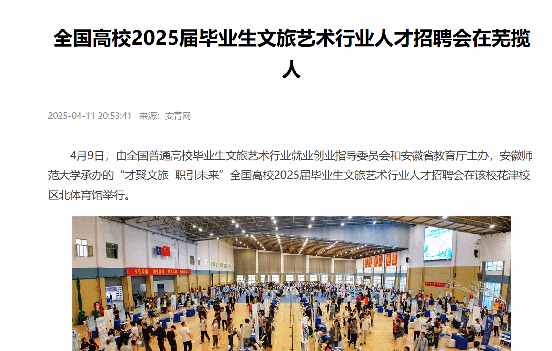 【安青网】全国高校2025届毕业生文旅艺术行业人才招聘会在芜揽人