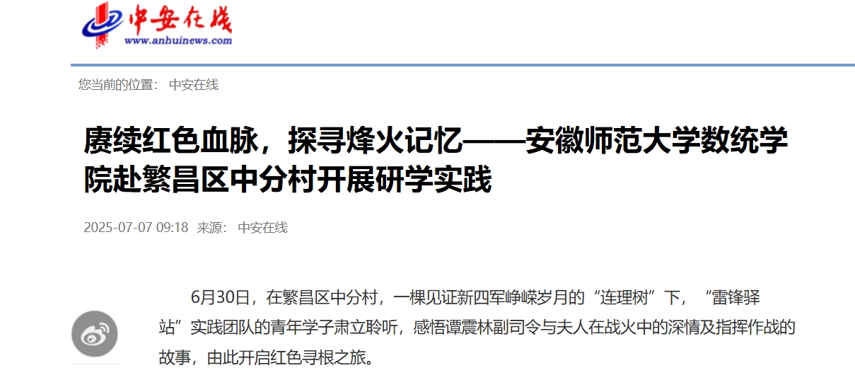 【中安在线】赓续红色血脉,探寻烽火记忆——安徽师范大学数统学院赴繁昌区中分村开展研学实践