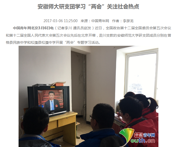 中国青年网:http://xibu.youth.cn/gzdt/gddt/201703/t20170306_9229494.htm