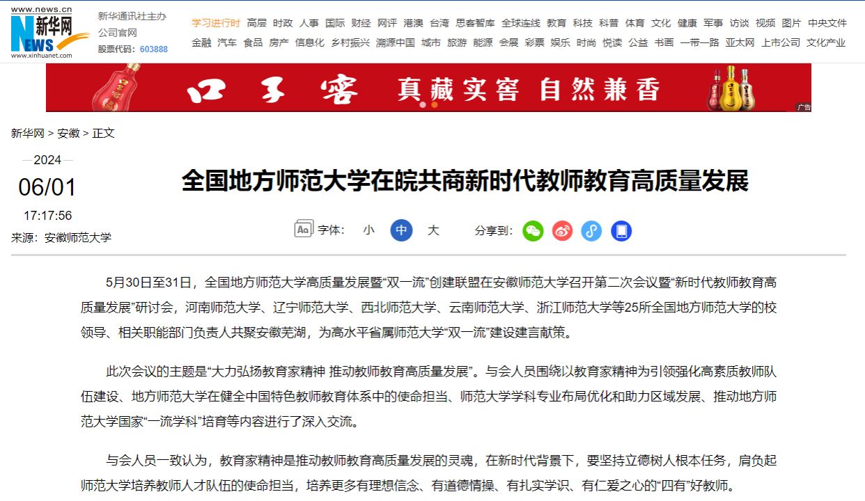 原报道阅读链接:【新华网】http://ah.news.cn/20240601/375c7333f28e44edae4fb515af49249b/c.html