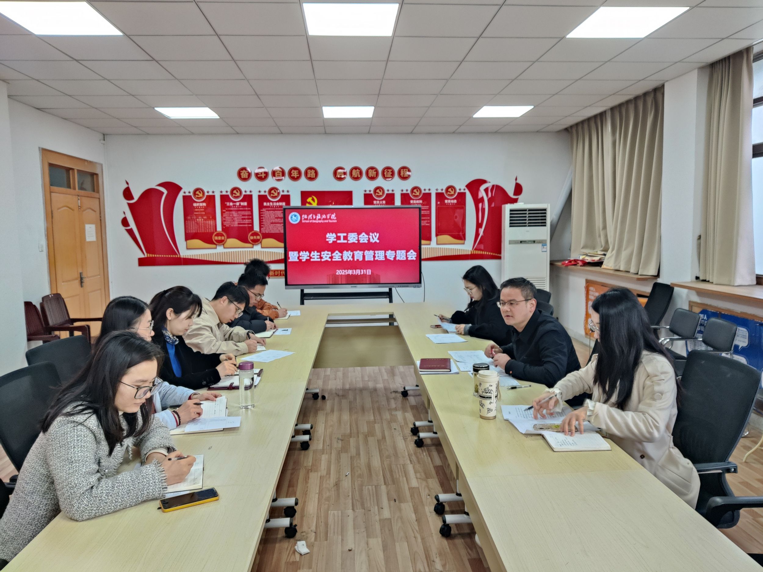 3月31日,地理与旅游学院召开学工委会议暨学生安全教育管理专题布置会,学院党委副书记付勇及全体专兼职辅导员参会。会议围绕“强化安全意识,深化护航行动”主题,结合学校“大学生护航行动计划”要求,系统部署新学期学生安全稳定工作,强调筑牢校园安全防线、压实安全管理责任。