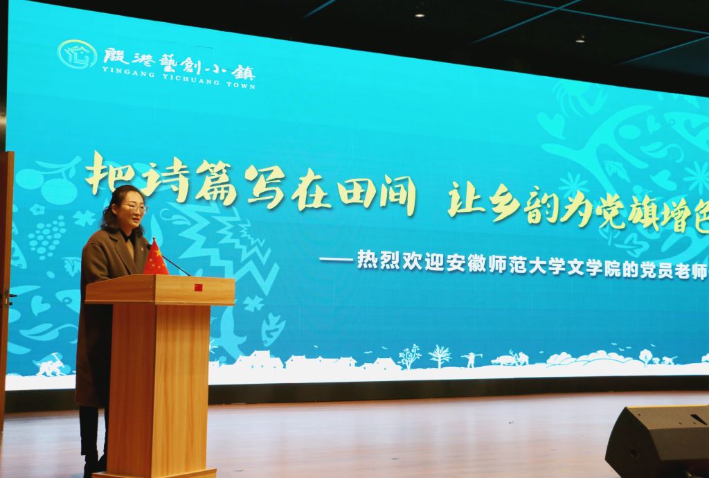 在领略完殷港艺创小镇的特色后,湾沚区农业农村局乡村振兴局副书记、副局长王峰,给文学院师生带来了以“把诗篇写在田间,让乡韵为党旗增色”为主题的党课,提出要以系统思维推进融合发展,以农村改革助力乡村振兴。文学院党委书记梁燕在党课结束后指出,文创产品就是文创产业的最直接体现,殷港艺创小镇的文化产品丰富多样,民族色彩深厚,充分展示了我国优秀传统文化,文学院党员和师生要以此次参观为契机,贯彻落实党的十九届六中全会精神,进一步坚定文化自信,为推动社会主义文化繁荣兴盛贡献力量。
