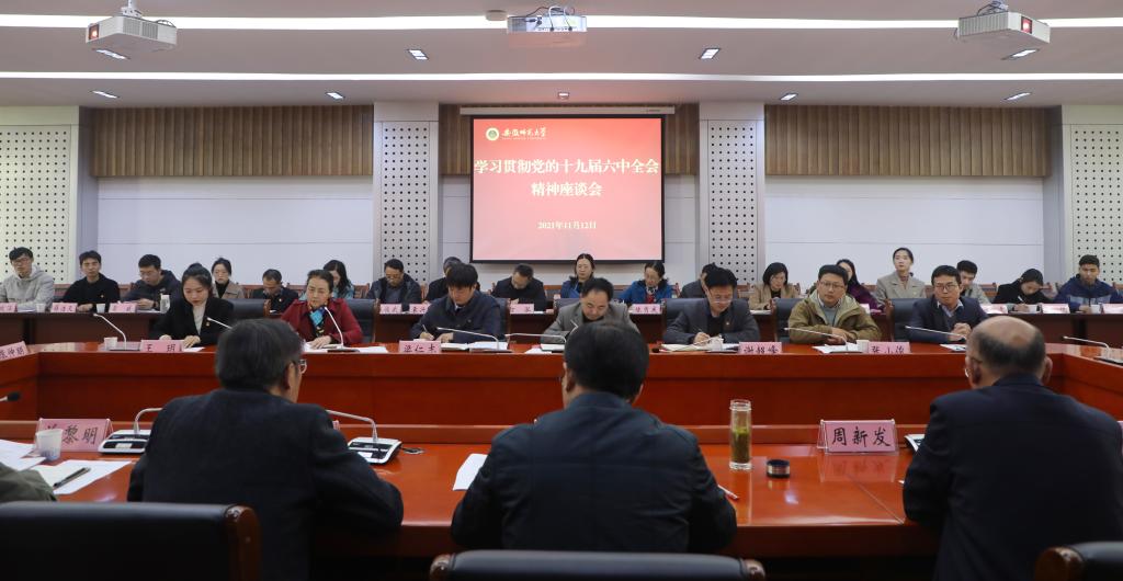 会上,师生代表围绕十九届六中全会精神展开热烈讨论。
