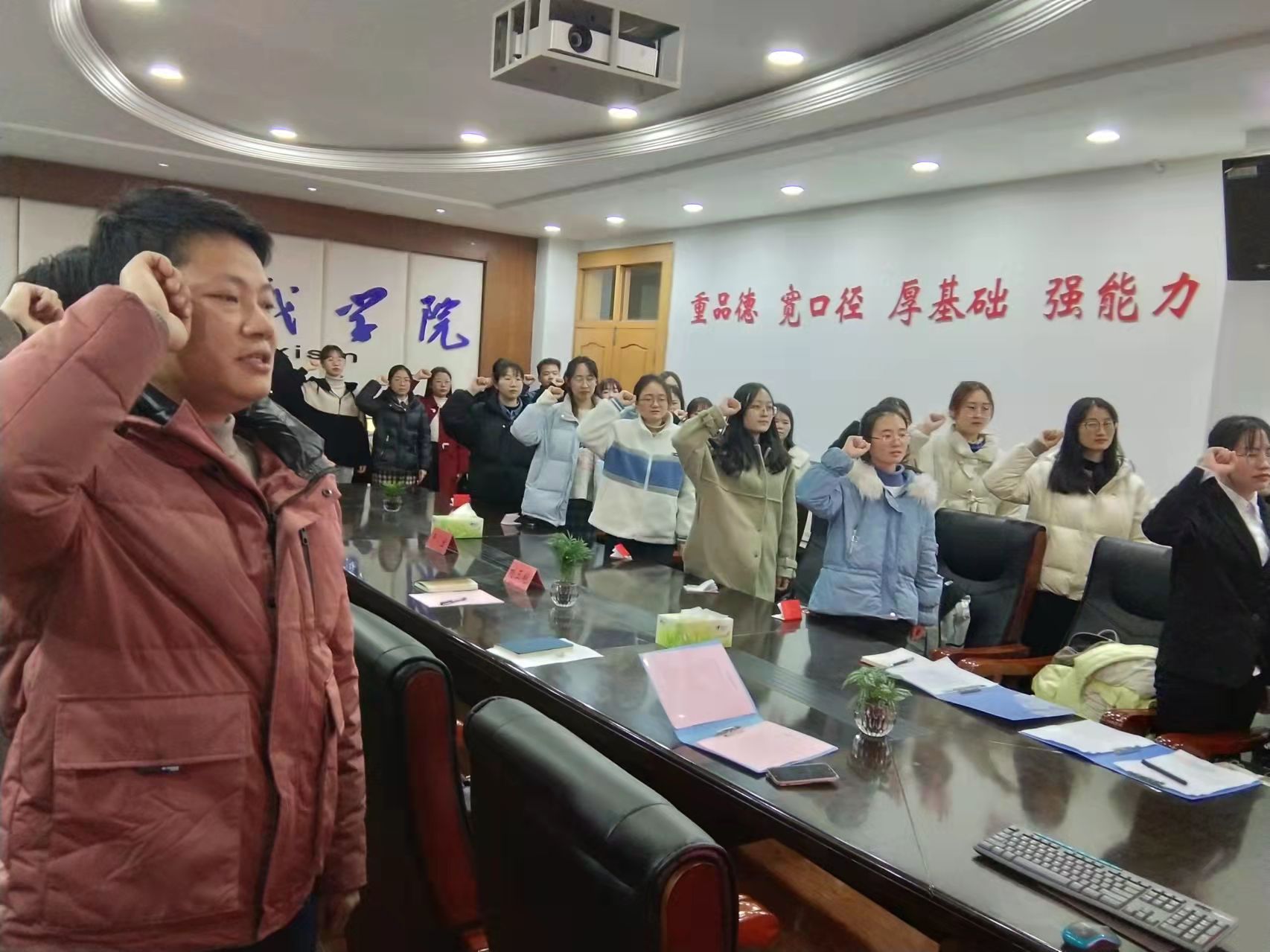 12月20日下午,马克思主义学院在学院四楼第一会议室举办2021年下半年发展党员入党宣誓仪式。学院党委书记严宏、党委副书记刘玉艳、组织员夏盼盼及全体预备党员参加了此次活动。本次宣誓活动由崔航主持。