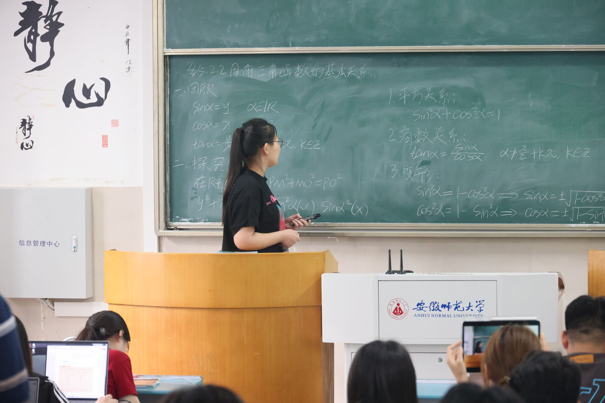 “在每一节课的研磨当中,我都发现别有洞天,这就是我们教研的意义。我们的教研生命决定了学生的个体生命的丰富性,丰富了我们的教研生命,就丰富了学生的生命个体,这就是一个教师所承载的责任。”铜陵三中政治课教师杨奇在课堂中向同学们谈到教研的意义。课后她在朋友圈中写到,“一整天都被师大学生刻苦而追求卓越的学习品质感动着,上完课学生围着询问教学设计,不断完善,在空荡的教室也有学生一个人在进行试讲模拟,一群青年人更加奋进地努力着!”