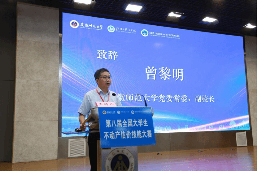 8月17-18日,由教育部高等学校公共管理类教学指导委员会主办,全国高校土地资源管理院长(系主任)联席会、中国土地估价师与土地登记代理人协会和中国房地产估价师与房地产经纪人学会指导,安徽师范大学地理与旅游学院、安徽省土地估价师与不动产登记代理人协会承办的第八届全国大学生不动产估价技能大赛决赛在安徽师范大学落下帷幕。本次大赛以“创新与融合:面向高质量发展的不动产估价”为主题,比赛队伍来自全国各大高校,经初赛遴选出48支队伍参加决赛。校党委常委、副校长曾黎明出席开幕式并致辞。