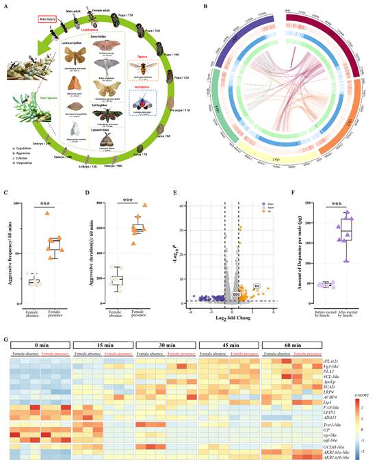 极端打斗行为(Extremely aggressive behavior)是一种特殊的打斗模式,仅存在于极少的动物类群,典型特征为打斗个体常以对手严重受伤甚至死亡而结束。目前,极端打斗行为的研究主要集中于行为生态学方面,缺少行为进化的分子机制。本研究基于前期研究发现一种膜翅目寄生蜂舞毒蛾卵平腹小蜂Anastatus disparis雄性间为争夺配偶表现出极端的打斗行为,利用二代、三代基因组测序技术,结合组学分析、分子生物学、药理学和行为学等手段,揭示了神经递质多巴胺异常、能量代谢(尤其是脂类代谢)和抗菌活性等舞毒蛾卵平腹小蜂雄性极端打斗行为进化和适应的重要作用。本研究为昆虫极端攻击行为进化的分子机制提供了新的见解。
