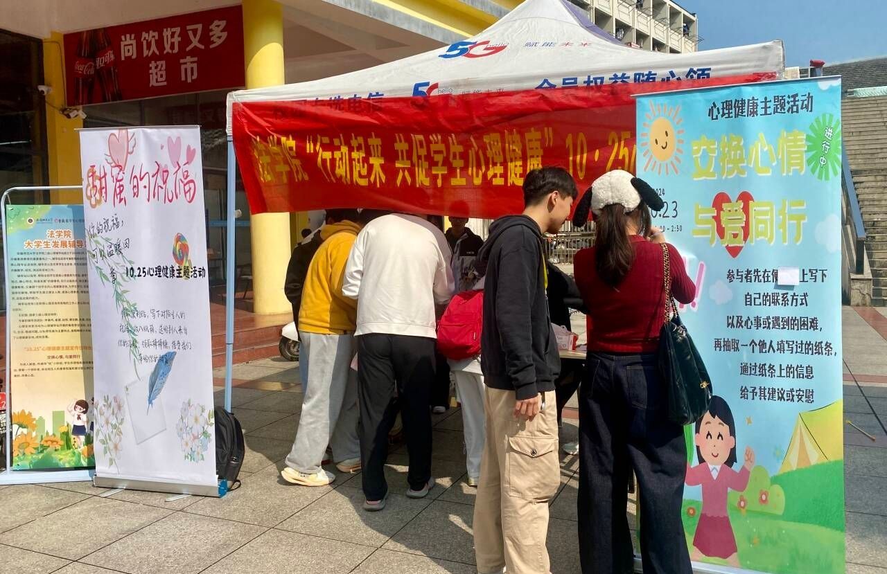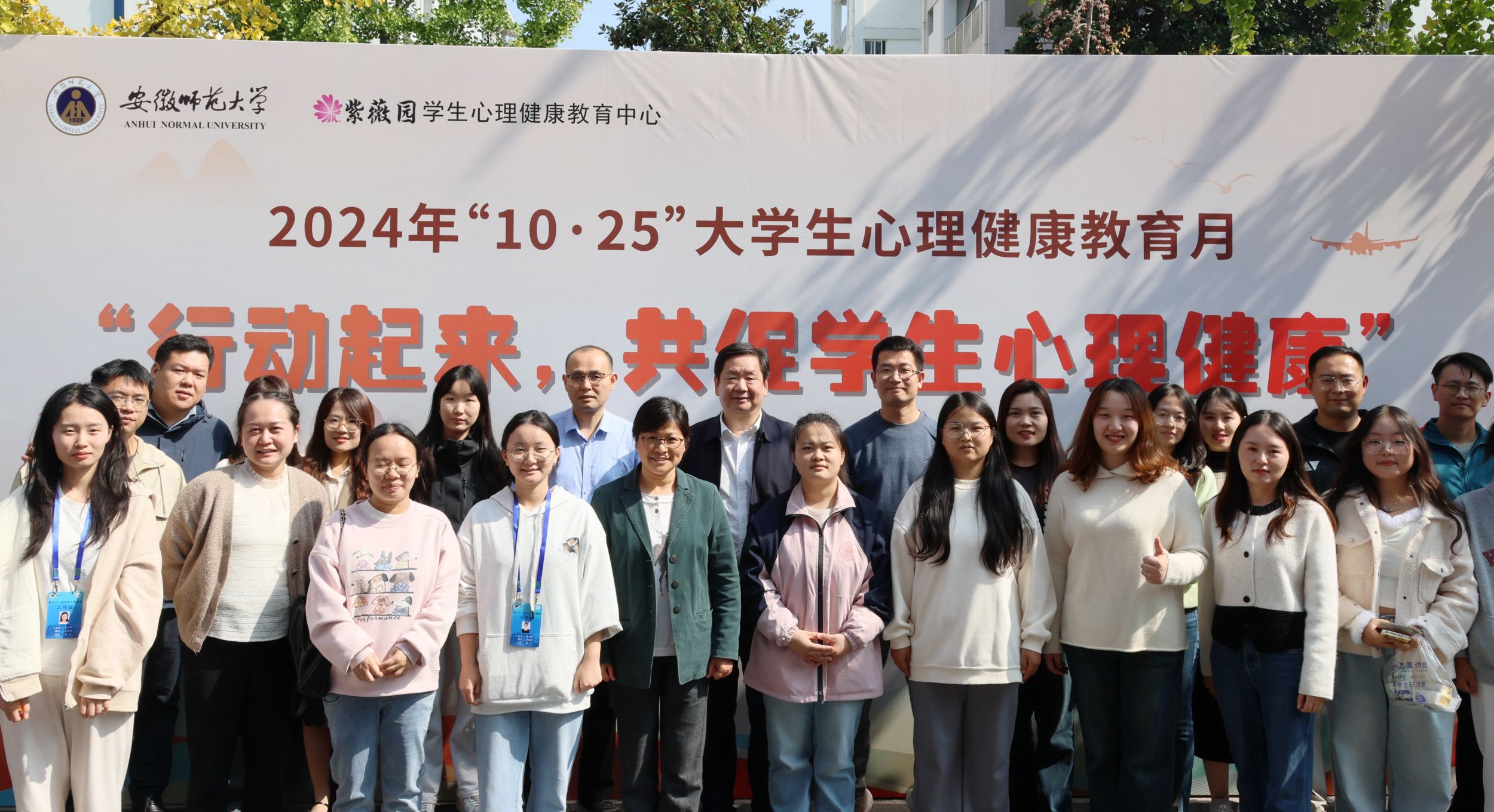 近日,我校在花津、赭山、天门山三个校区和校、院、班三级,开展丰富多彩的2024年“10·25”大学生心理护航主题活动,呼吁和组织全校师生“行动起来,共促学生心理健康”。校党委副书记胡靖,有关部门和学院负责人和发展辅导站站长及广大学生分别参与各类活动。