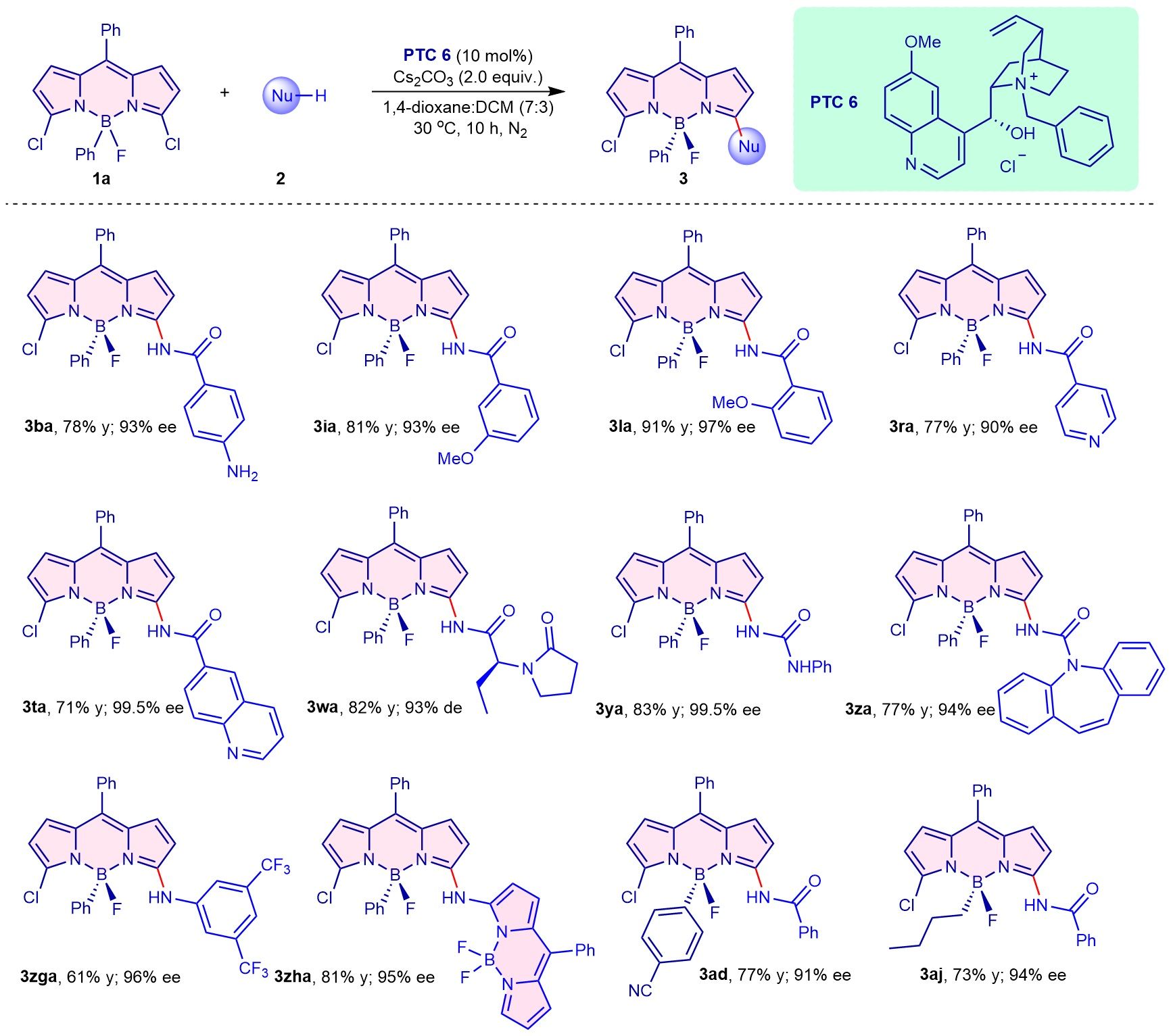 该课题不仅提供了一种新颖的硼手性氟硼二吡咯类化合物合成策略,对于其机理的探究可能也为该类不对称催化体系提供新的思路。