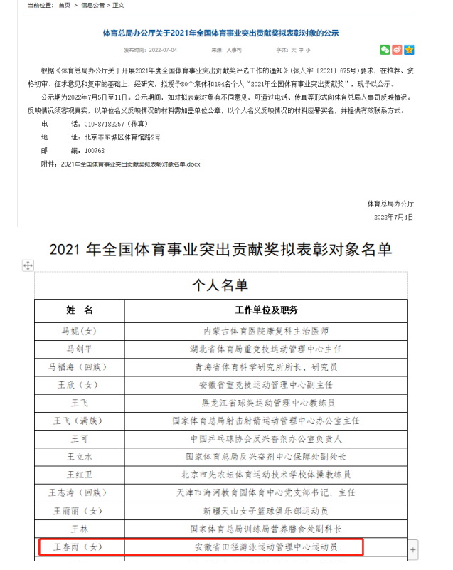 近日,国家体育总局发布关于授予2021年度优秀运动员和教练员体育运动荣誉奖章的决定,我校体育学院2022级硕士研究生谭强同学被授予“2021年度优秀运动员体育运动荣誉奖章”,王春雨副教授被授予“2021年度体育运动一级奖章”,以表彰他们在东京奥运会、羽毛球世锦赛等国际重大比赛上取得的优异成绩。此外,王春雨还被授予2021年全国体育事业突出贡献奖。