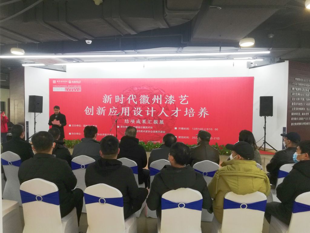 12月16日,国家艺术基金2022年度艺术人才培训资助项目《新时代徽州漆艺创新应用设计人才培养》结项成果汇报展首站在安徽众藏文化艺术馆开幕。省美协副主席、综合材料艺委会主任吴晓明,中国美术家协会理论艺委会委员、南京师范大学教授、博士生导师张犇等省内外专家、教师代表、学员代表等出席了开幕式,校科研处处长徐彬致辞并宣布展览开幕。开幕式由美术学院党委书记王继民主持。