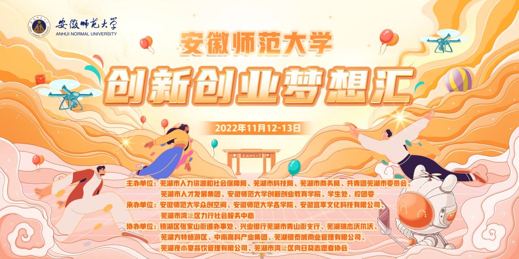 11月12-13日,由芜湖市人社局、科技局、商务局、人才发展集团和安徽师范大学创新创业教育学院、学生工作处、校团委共同主办,校大学生众创空间承办的安徽师范大学2022年创新创业梦想汇圆满落幕。